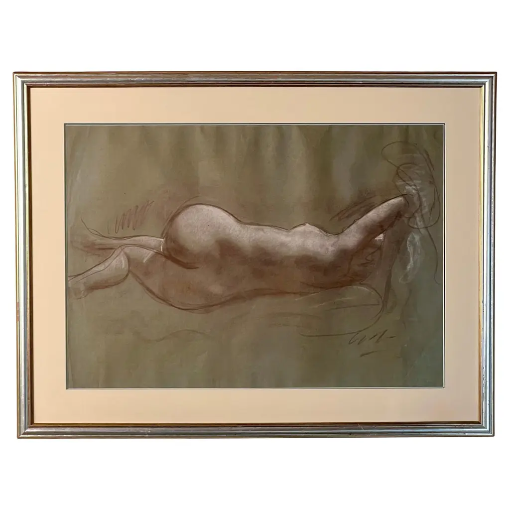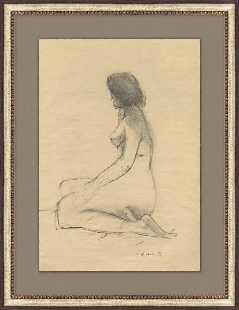 This beautiful Giclée print of the artist's original gestural life drawing is reminiscent of figure studies from the sculptor Rodin. Beautifully matted and simply framed, it arrives ready to hang.