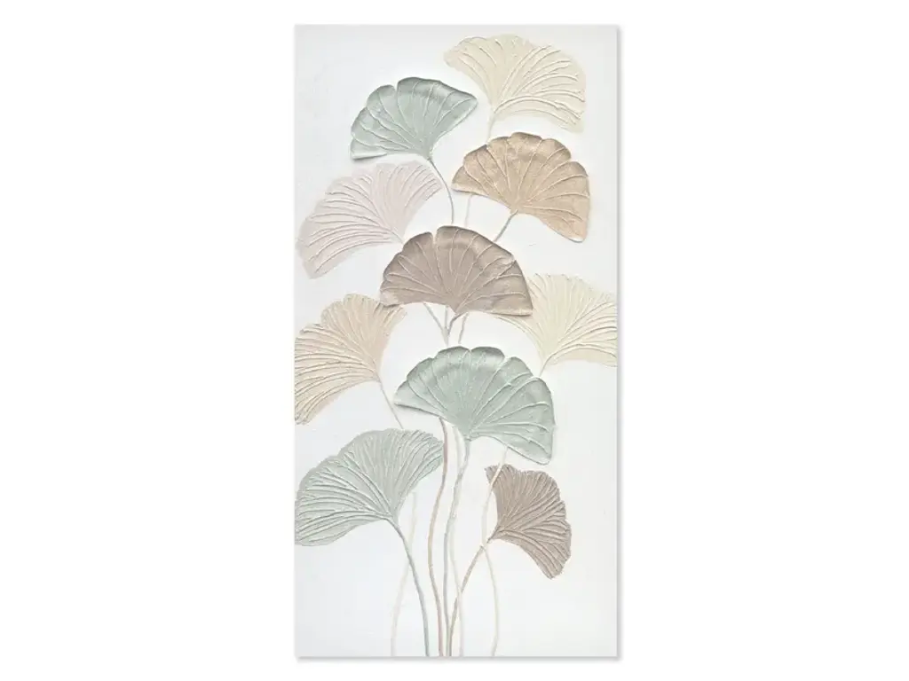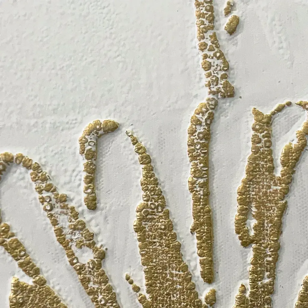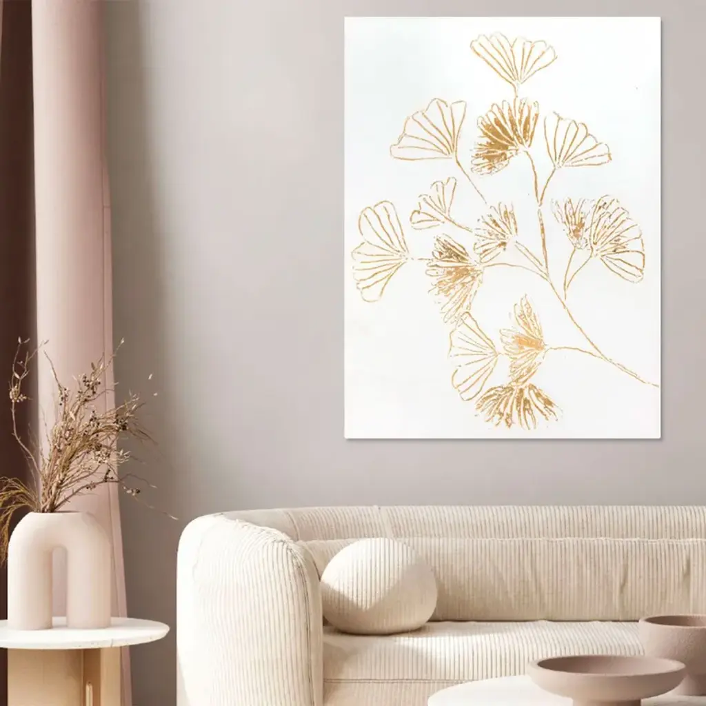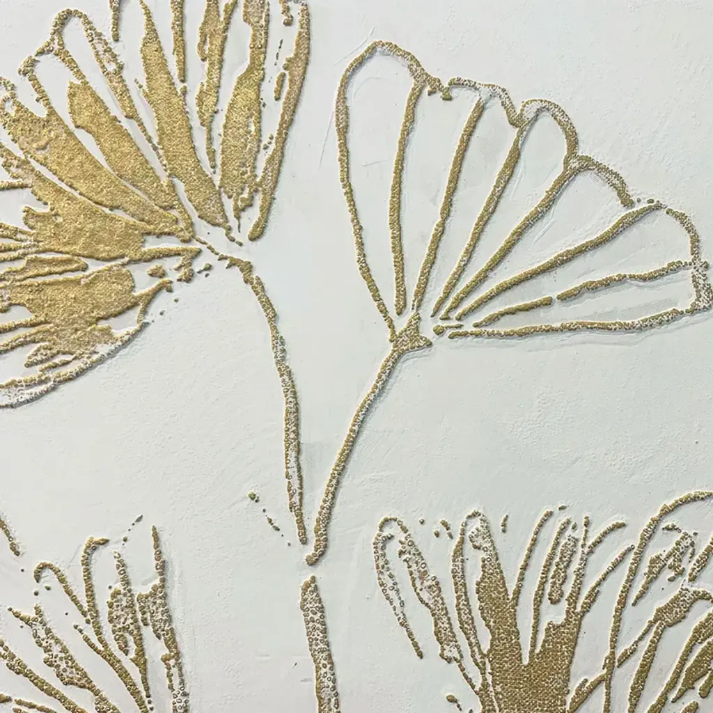 Fil di Fiore is a hand-painted nature painting on canvas. The relief illustration of a ginkgo biloba branch composes an artwork of delicate charm. The gold-coloured painting of the illustrative strokes is elegantly arranged on a white background. With a wooden inner frame and painted edges, the painting is ready to hang.The AGAVE Quadri collection represents the excellence of contemporary art applied to the world of interior design. Each piece, hand-painted with artisanal techniques by the finest artists in collaboration with the Italian company AGAVE, combines abstract, natural, and figurative elements to create unique and refined works. These paintings transform spaces into environments of great elegance and character, perfect for interior design projects that require a distinctive and artistic touch.