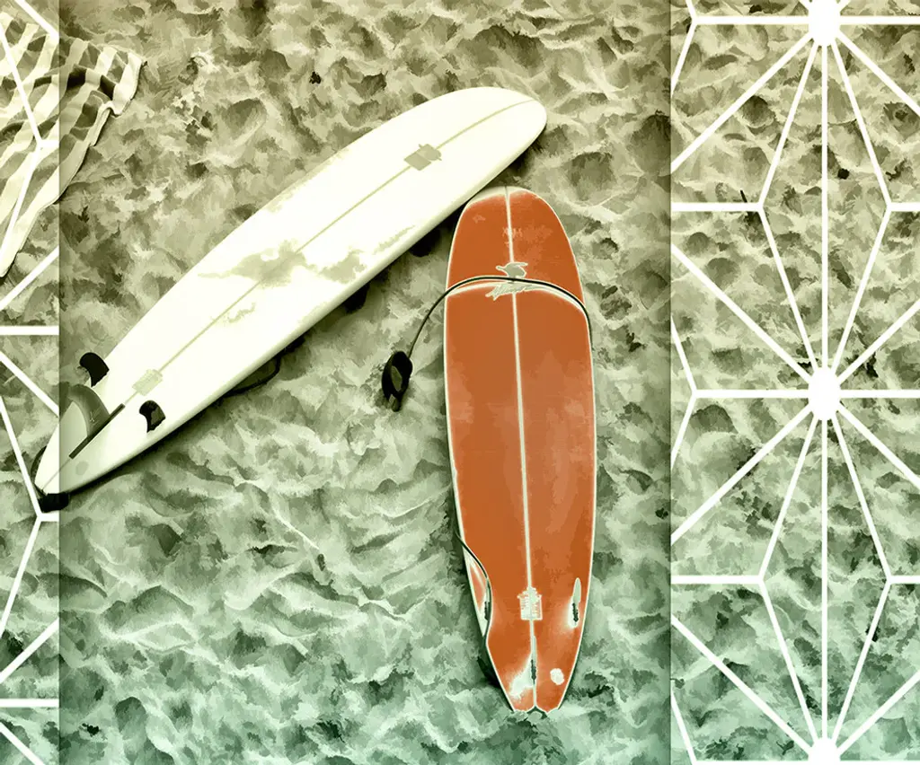 Artwork by Janet Van Arsdale printed with UV inks to high quality 1/8" thick brushed aluminum Dibond with a gloss UV/Anti-graffiti coating. 4 holes drilled for standoff hardware. Signature in the image. Includes Set of 4 1"D x 1"H Barrel aluminum stando