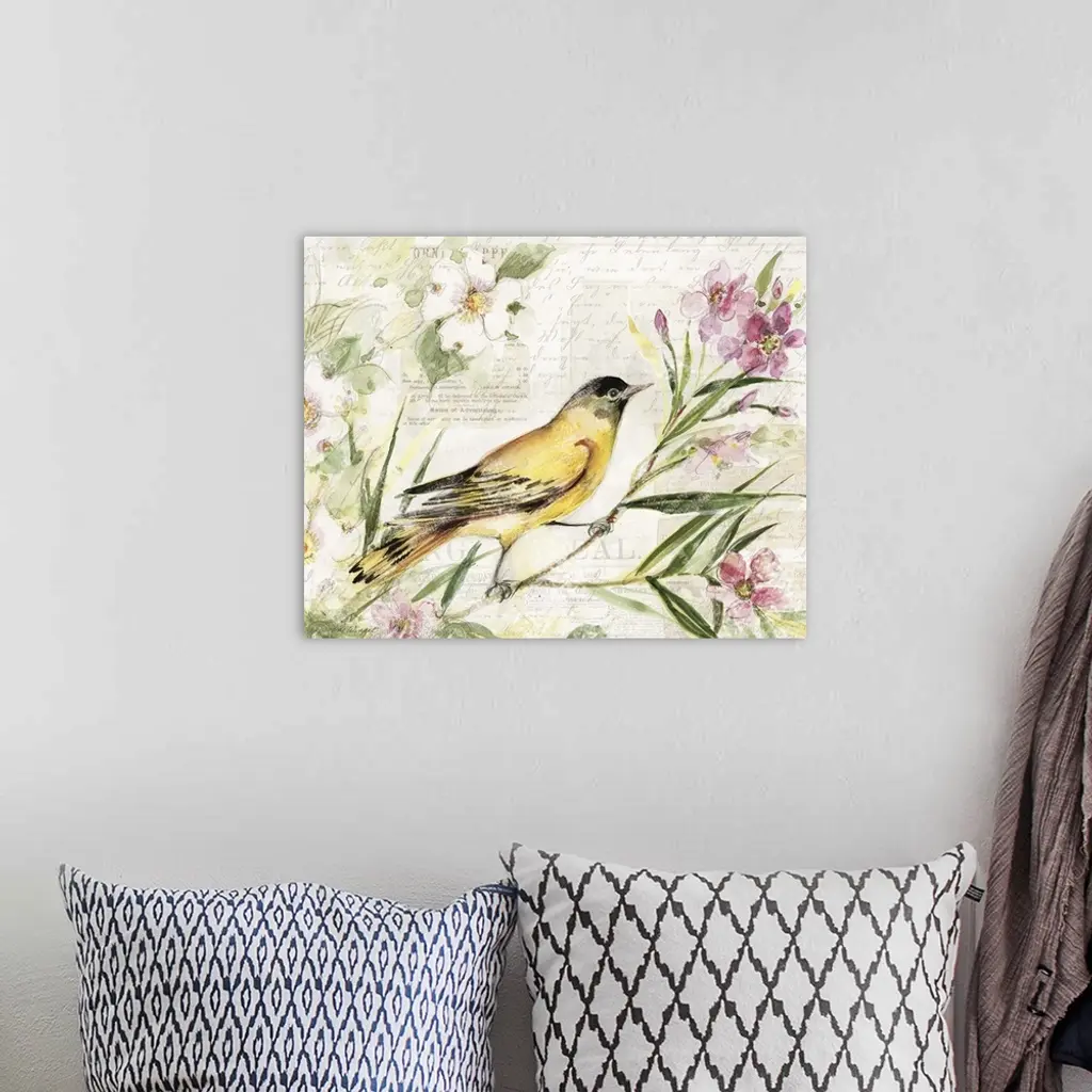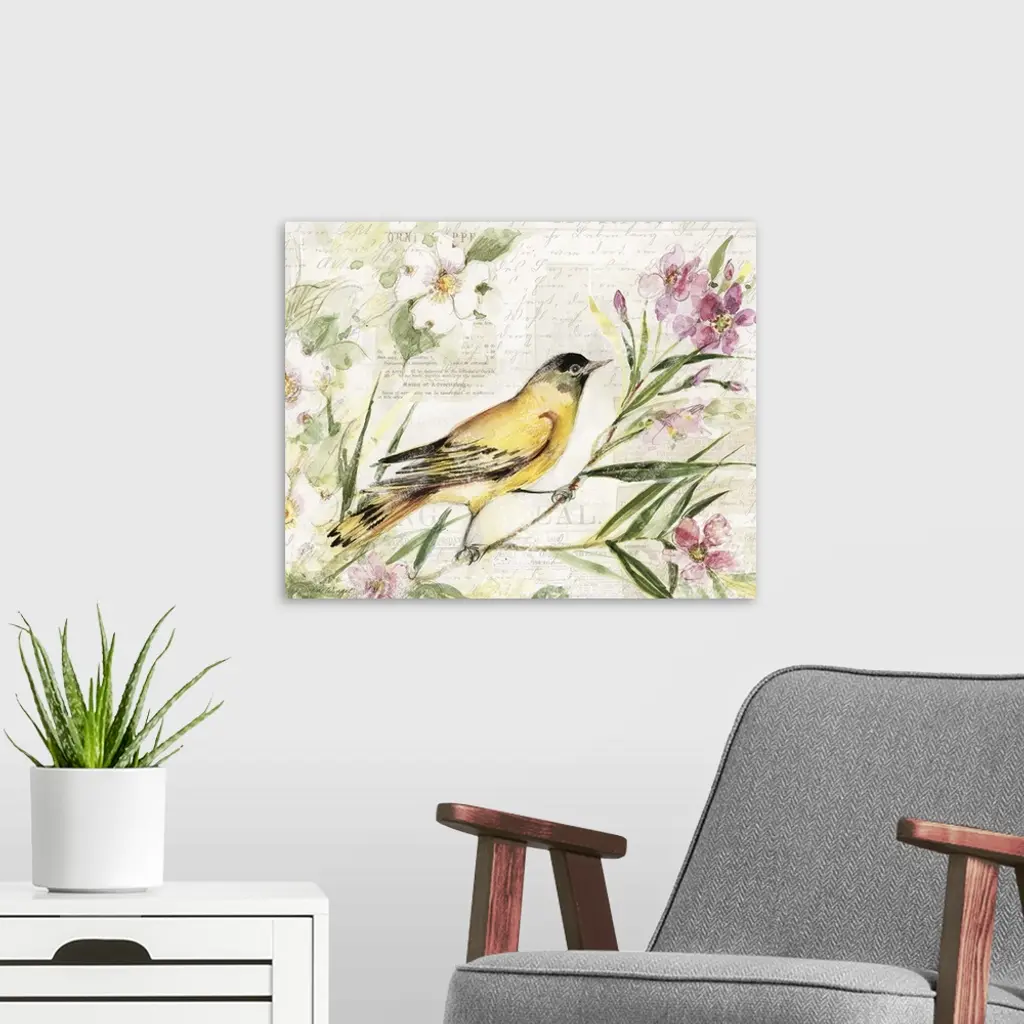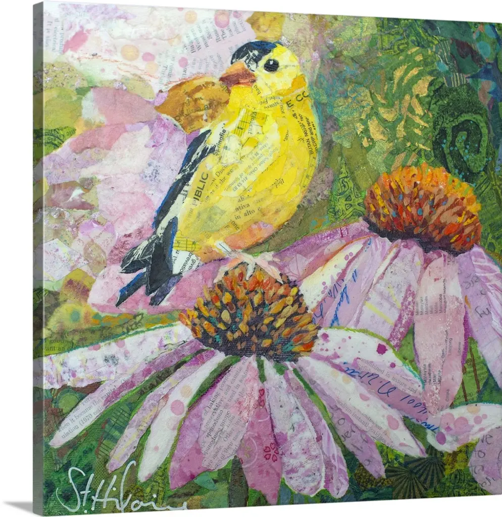 Loose, sketchbook art treatment of the beautiful finch is lovely for any decor
