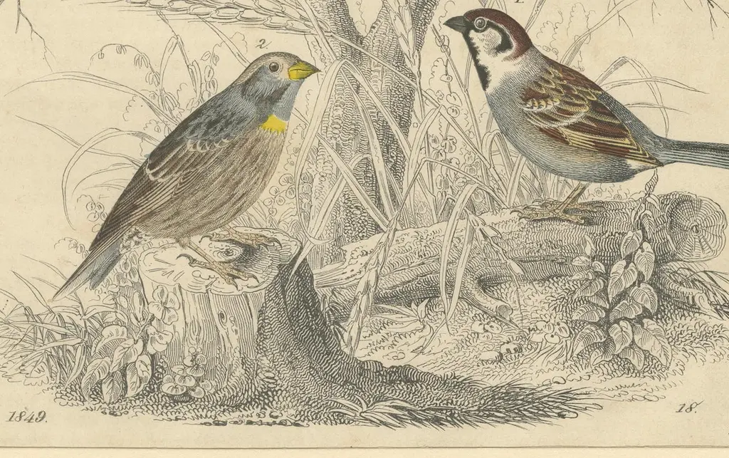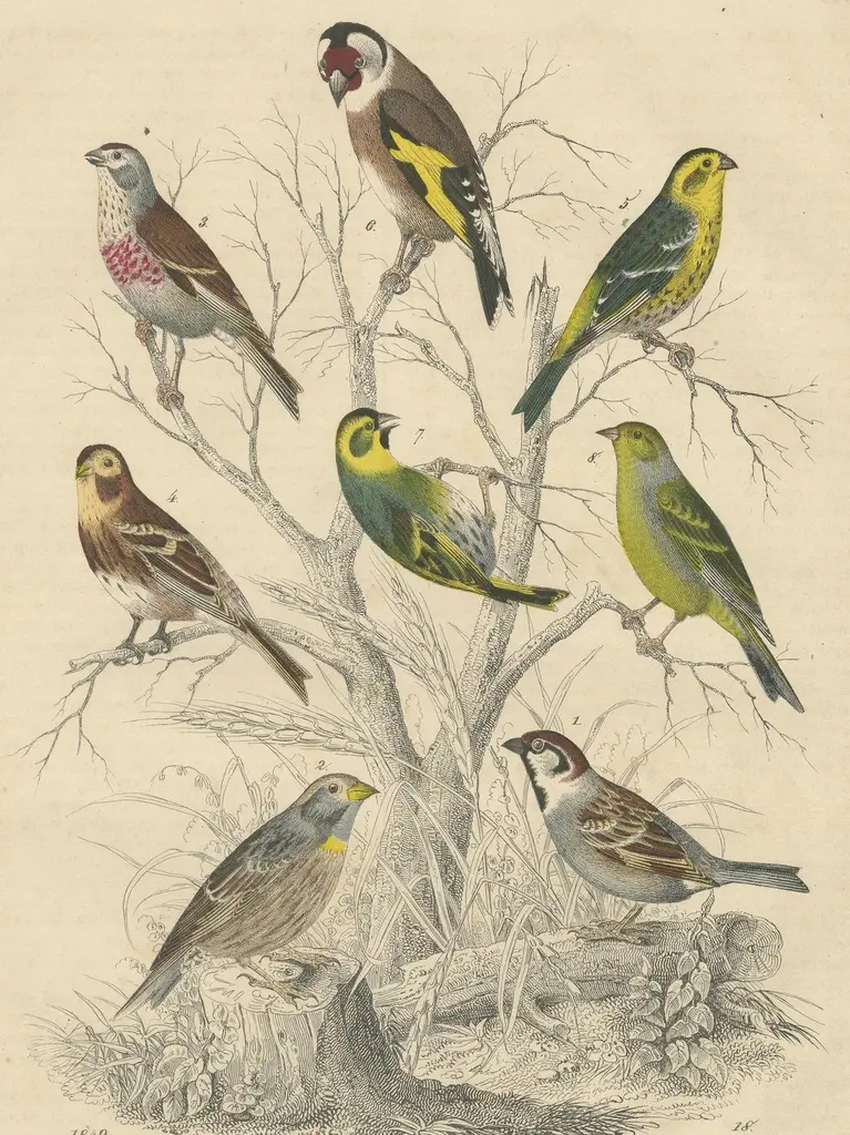 Finches And Sparrows: An 1849 Avian Assembly - A Hand-Coloured Lithograph