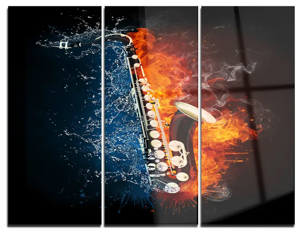 "Fire And Water" Art Glossy Metal Wall Art, 3 Panels, 36"x28"