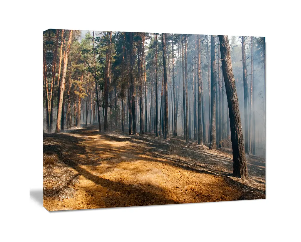 Fire In Forest With Flame And Smoke, Modern Forest Canvas Art, 20"x12"