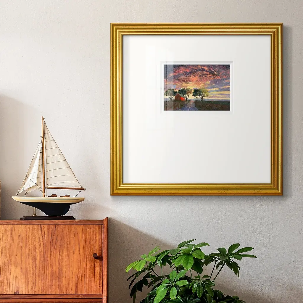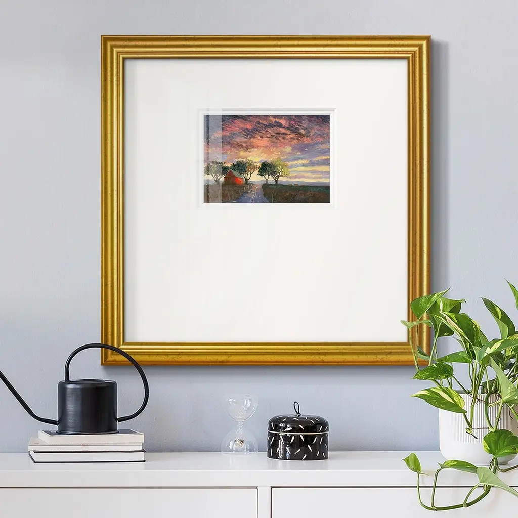 Fire in the SkyPremium Framed Print A framed cold pressed paper print featuring superior double matting and quality frame. 2 SIZES AVAILABLE 16''X16''' - Overall Size 20''X20''' - Overall Size Each piece is made to order. Each piece comes with hanging hardware. Made in the USA Ready to Hang Giclee Paper Print Plexiglass Beveled Matt Board Double Matte Board