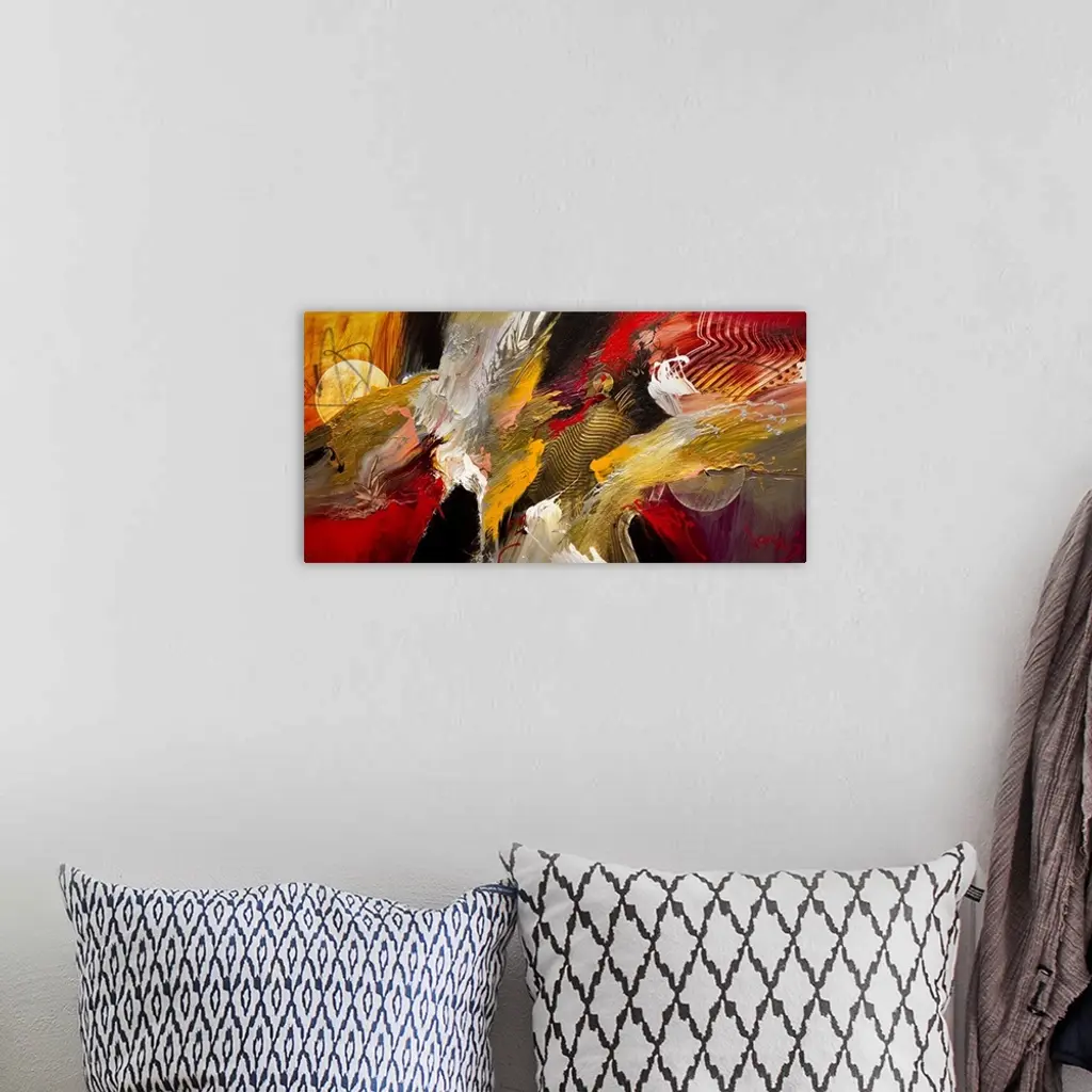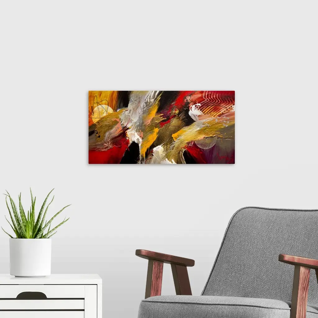 Contemporary abstract painting using wild and vivid colors to create movement and depth.