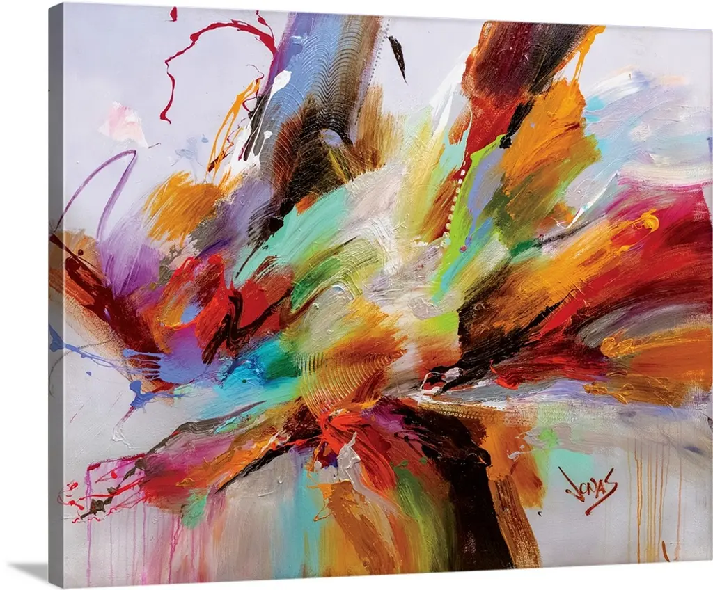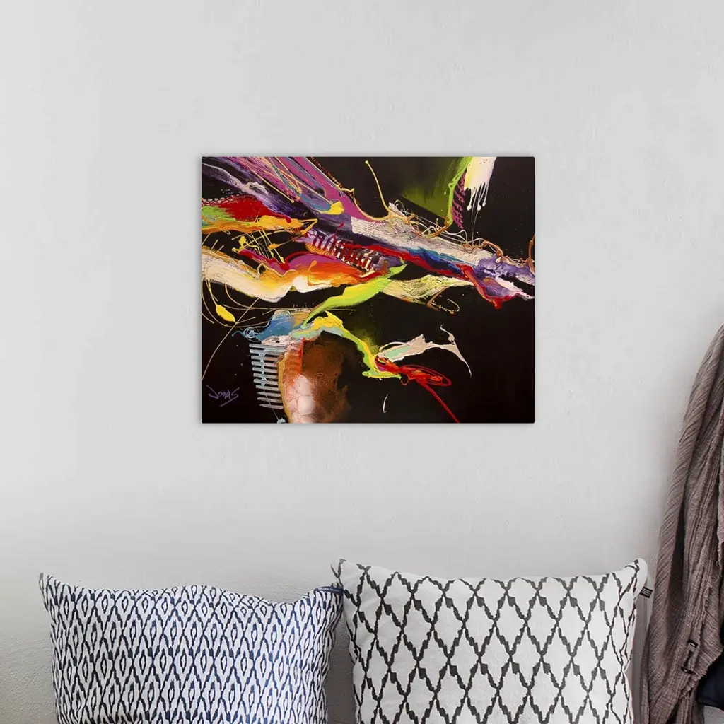 Contemporary abstract painting using wild and vivid colors to create movement and depth.