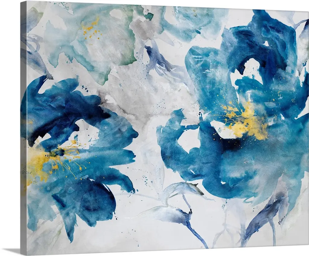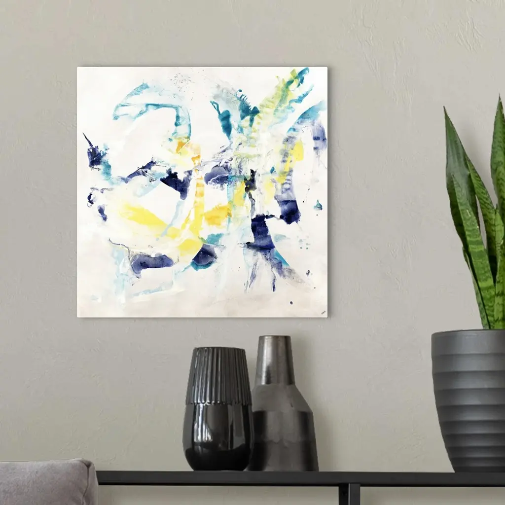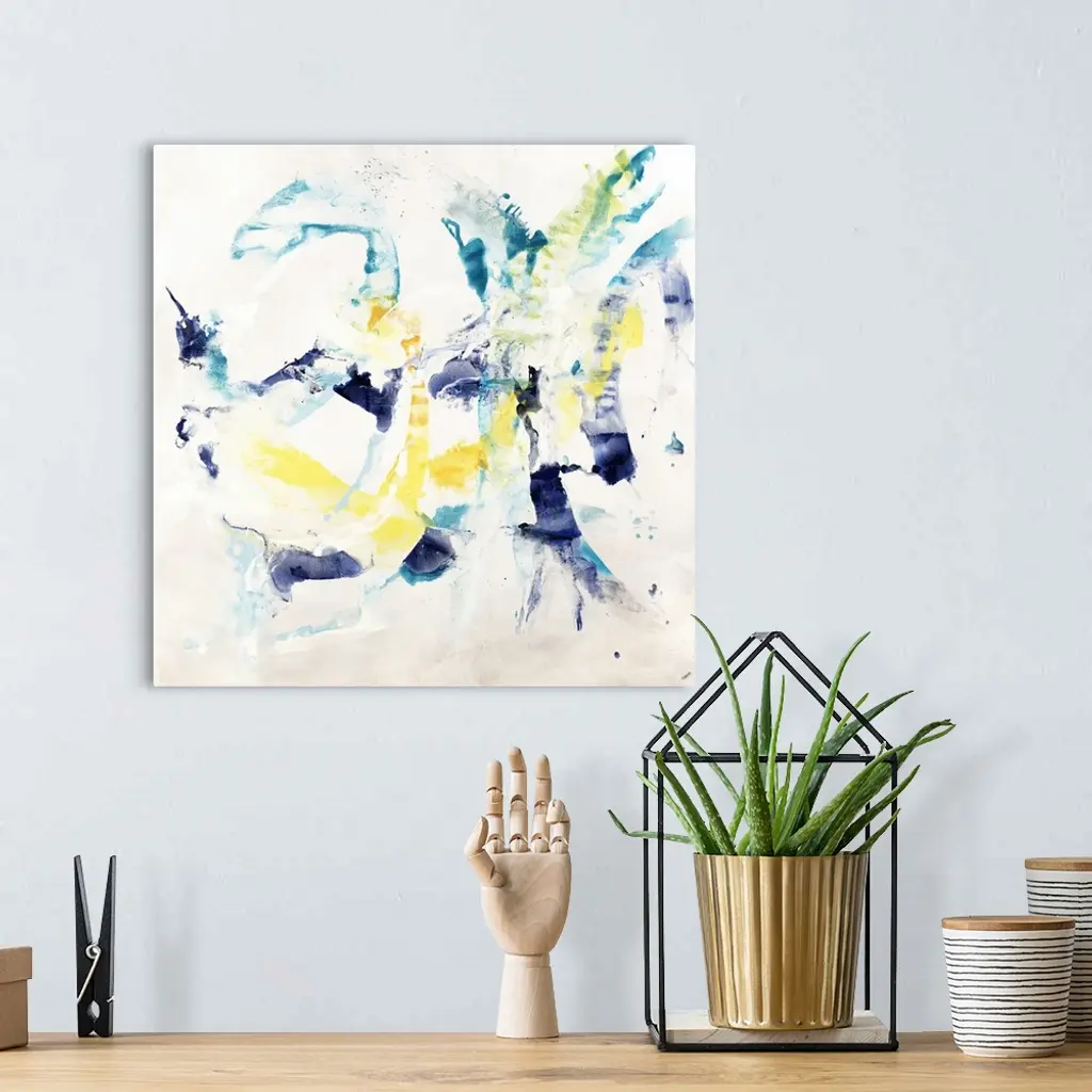 A contemporary abstract painting using colorful lines of paint against a white background.