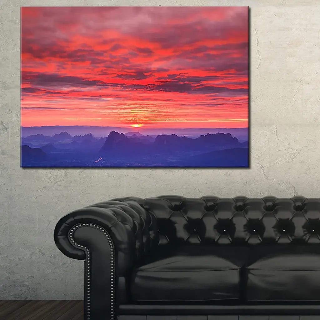 The First Light Morning Sunrise canvas art print is sure to make an impression on anyone who sees it. This artwork is gallery wrapped around a 1-inch solid wood frame and arrives carefully packaged and entirely ready to hang on the wall. Design Art only uses the highest resolution and pigments to ensure a crisp colorful print that is never faded or pixelated. This artwork is sure to be a conversation starter in any home or office.