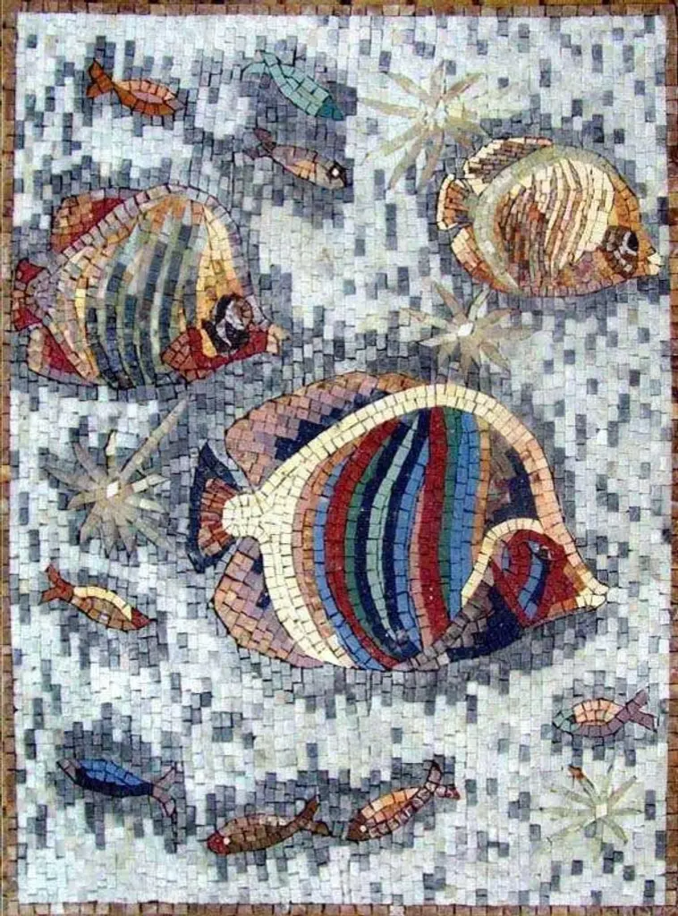 Introducing our stunning Fish Art Mosaic Mural, a captivating addition to any home or commercial space that celebrates the beauty of the underwater world. This exquisite piece is meticulously handcrafted from natural marble and features a vibrant array of exotic fish, each one crafted from hand-cut tiles that bring depth and dimension to the artwork.Every detail in this mosaic is a testament to the skill and artistry of the craftsmen behind it. The intricate designs showcase various species of fish, each uniquely represented with rich, colorful stones that evoke the lively essence of the ocean. The combination of diverse textures and hues not only enhances the visual appeal but also creates a dynamic flow, providing a sense of movement that can instantly transform any wall into a mesmerizing focal point.Ideal for any setting, the Fish Art Mosaic Mural works beautifully in living rooms, dining areas, offices, or even as a standout piece in a creative studio. Its elegant yet playful design invites conversation and admiration, making it a perfect gift for art lovers or ocean enthusiasts alike.Made from high-quality materials, this mural is not just a piece of decor; it is a durable art installation that will retain its beauty for years to come. The natural stones used in the mosaic are selected for their longevity and vibrancy, ensuring that the colors remain radiant and fresh.Whether you’re looking to enhance your existing decor or searching for a unique statement piece, the Fish Art Mosaic Mural offers the perfect blend of artistry and craftsmanship. Dive into a world of color and creativity with this one-of-a-kind artwork that promises to bring a slice of the ocean right into your space. Order yours today and let the beauty of marine life inspire your home!
