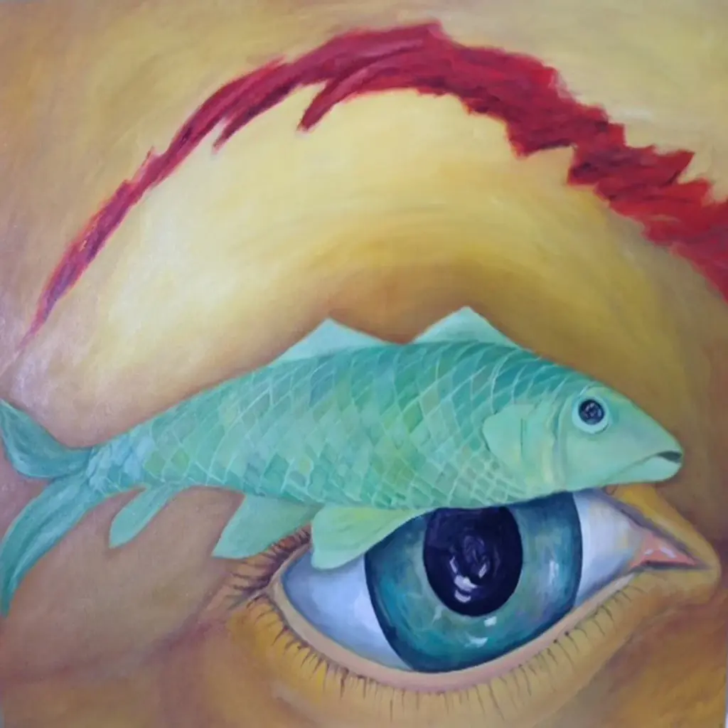 Aquamarine fish lays across an aquamarine eye, punctuated by a red eyebrow. Print on CanvasDEBORAH PITT Lives in Los Angeles. Her artwork has evolved through many different styles, all united by the common theme of wonder: wonder about our beautiful world, wonder about our amazing universe, and wonder about the mysterious forces which connect us to each other. A graduate of Wellesley College and U.S.C.. Deborah is happily married and has two children. The first working artist Deb encountered was her beloved Grandmother who painted enthusiastically with both pastels and oil paints.