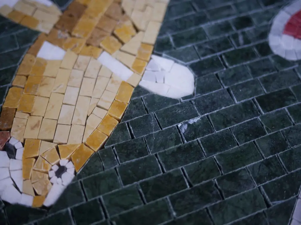Transform your living space into a serene oasis with our Fish Mosaic Tile Art: Playful Yellow and Red-Orange Koi Pair. This stunning artwork features a captivating duo of Koi, masterfully handcrafted from premium quality natural stone. Each tile is meticulously hand-cut and assembled, creating a dazzling visual display that brings warmth and charm to any room. Perfect for enthusiasts of aquatic life or those seeking to elevate their home decor, this luxury stone mosaic serves as a striking focal point, drawing the eye and sparking conversation. The playful interaction of the Koi captures their natural grace and beauty, symbolizing luck, prosperity, and tranquility—qualities that enrich your home environment. The piece showcases luminous, jewel-like Orange Quartz with its radiant, prismatic brilliance, complemented by the shimmering, crystalline depths of Dark Red Quartz and the translucent warmth of Light Red Quartz. These exotic materials imbue the mosaic with a scintillating richness and vibrant energy, enhancing the artwork’s captivating allure. Whether adorning your living room, hallway, or office, this handcrafted mosaic fits seamlessly into any decor style, from contemporary to traditional. It also makes an exquisite gift for art lovers and decor aficionados alike. Embrace the beauty and harmony of nature with this premium quality Fish Mosaic Tile Art. Let these vibrant Koi swim into your heart and home, adding an artistic touch that resonates peace and joy. Each piece is not just art; it is a celebration of life, color, and craftsmanship that you will cherish for years to come.