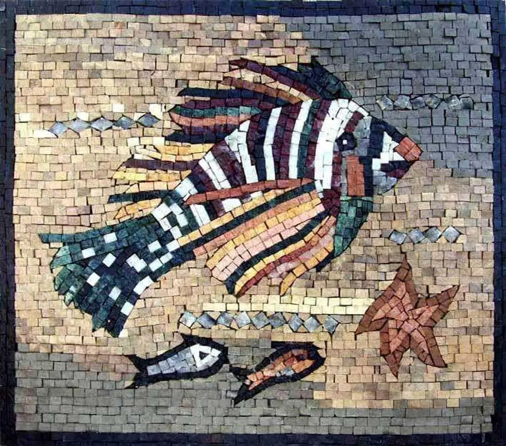Fish Stone Mosaic Art - 80cm X 80cm (32" X 32") / Without Frame