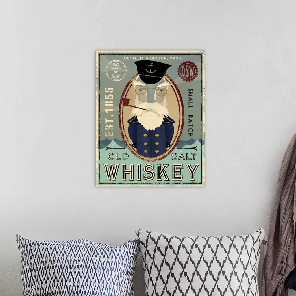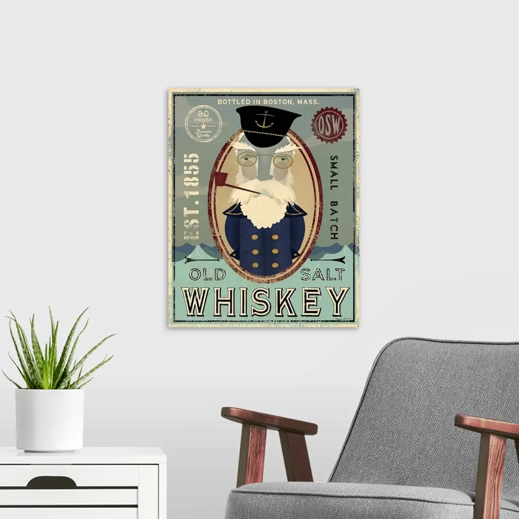 Contemporary artwork of an illustrative fisherman's whisky advertisement.