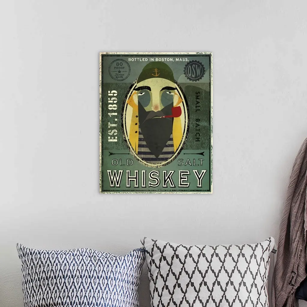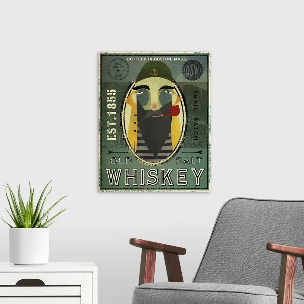 Contemporary artwork of an illustrative fisherman's whisky advertisement.