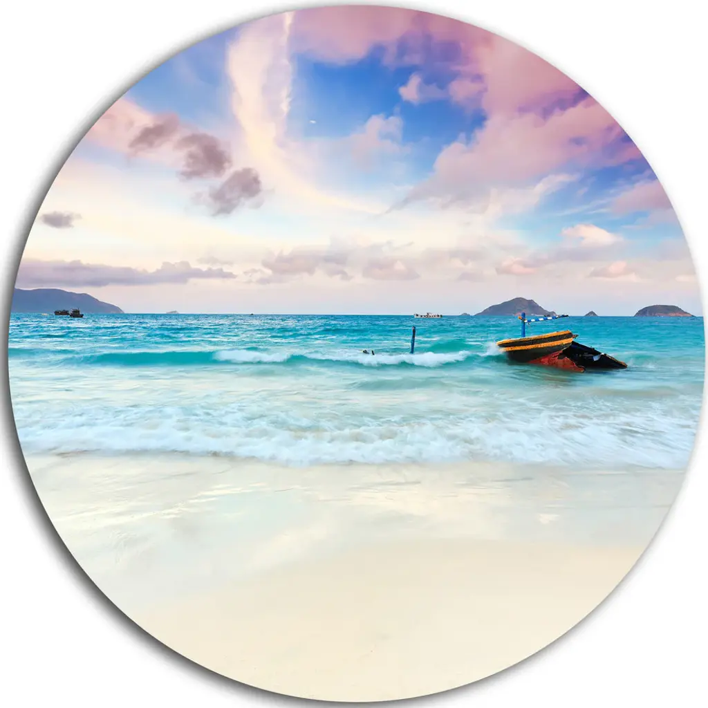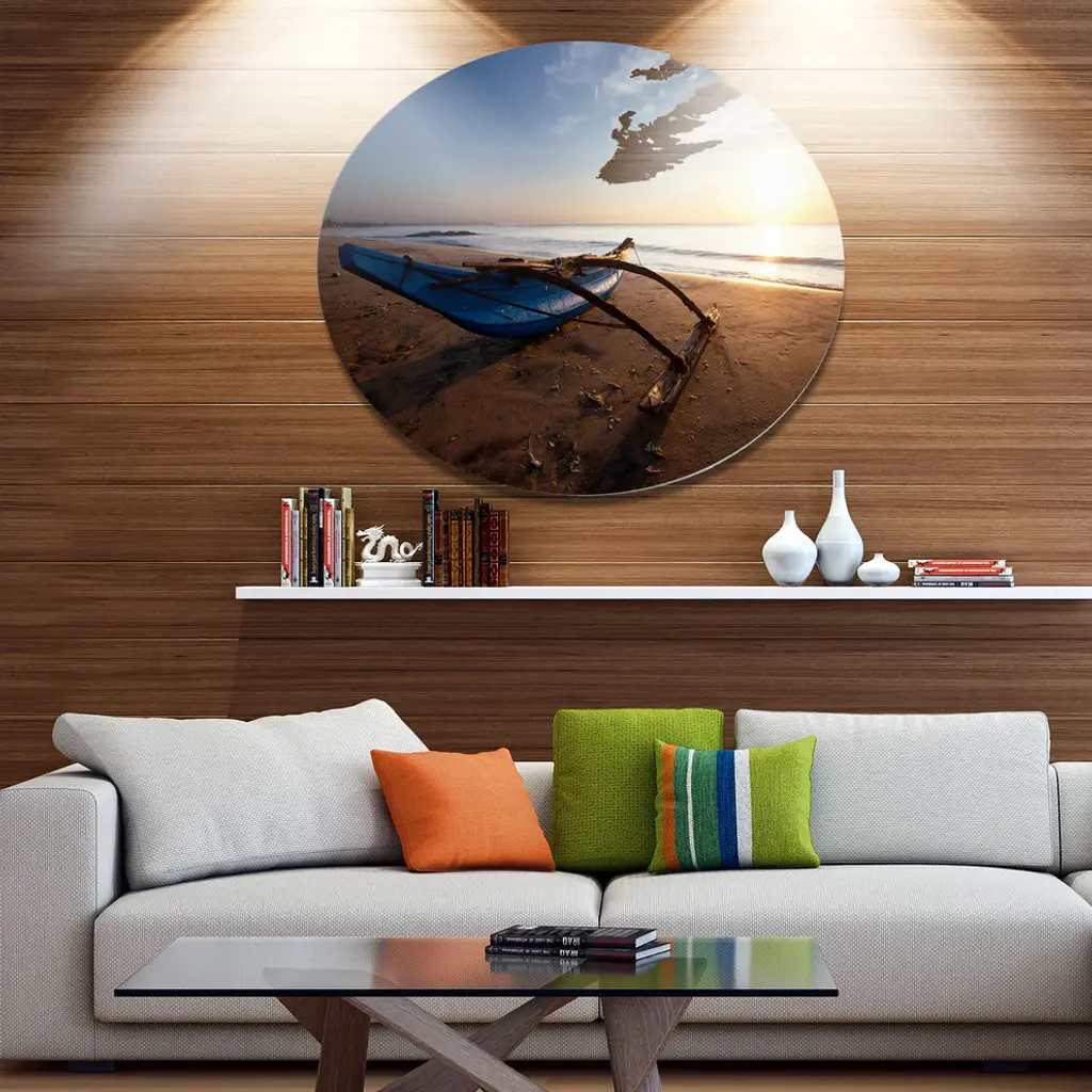 Fishing Boat In Sri Lanka Beach, Seashore Large Disc Metal Artwork, 36"