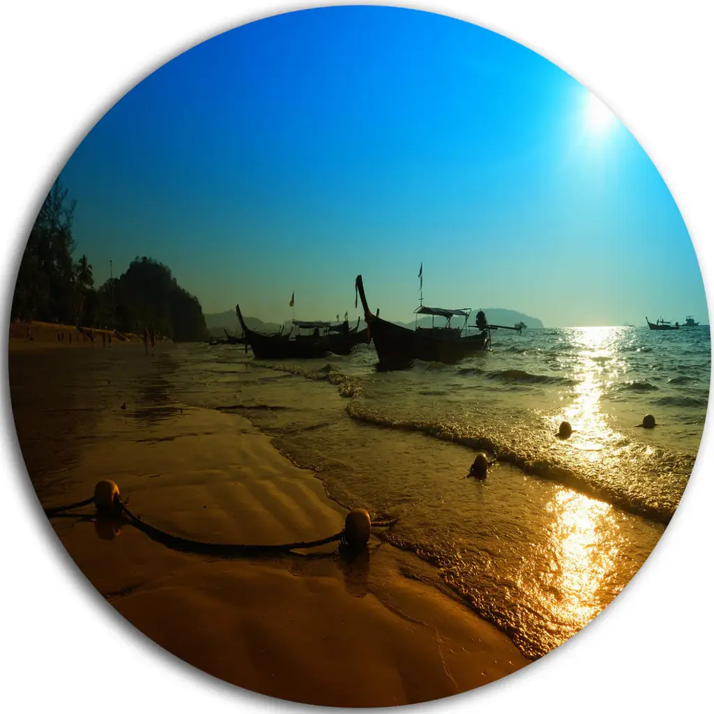 Bring Contemporary Abstraction to your home with this large Circle Metal wall art. This Fishing Boat On Beach with Dark Clouds Metal Artwork makes it the focal point of any room or office. - White Gloss Coating ensures colors are extra vibrant with light reflection.- Aluminum grade Sheet Metal with 1 inch mounting frame on the back giving the illusion that the artwork is floating on the wall..- Mounting Brackets are included along with instructions.- High Quality Digital images are created directly into a glossy aluminum panel producing a stunning and captivating print into the glossy finish of the metal.- Water, Fire and Scratch resistant HD Aluminum panels.- Looks better than any photo paper and guaranteed to last at least 20 years- Easy to clean with a microfiber cloth. Colors are far superior to regular Canvas Art. - Easy to Hang