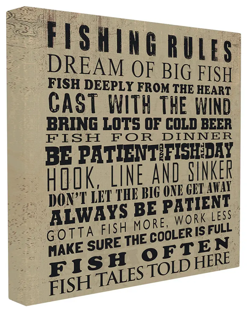 Fishing Rules Typography Stretched Canvas Wall Art, 24x24