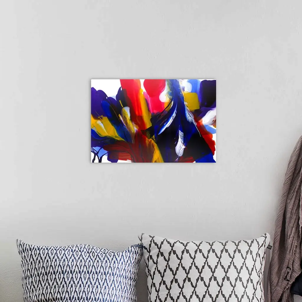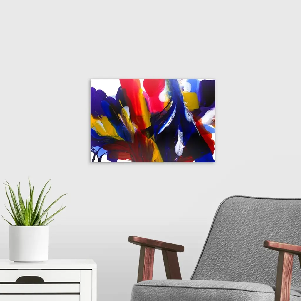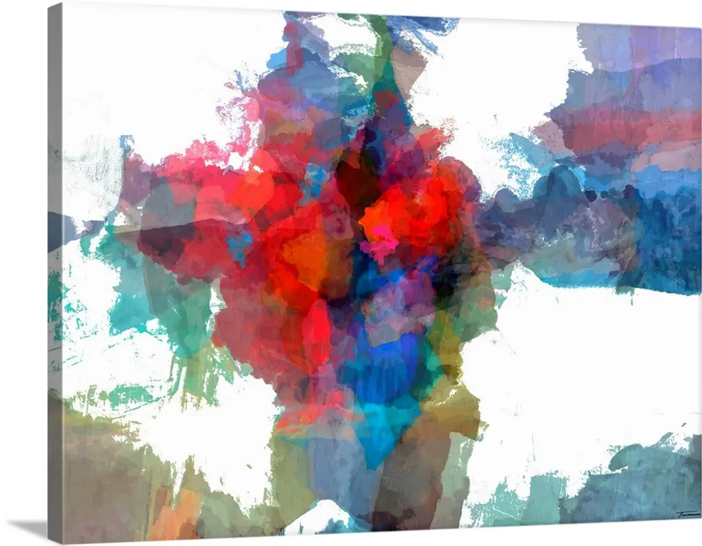 Contemporary abstract painting using wild and vibrant splashes of color.