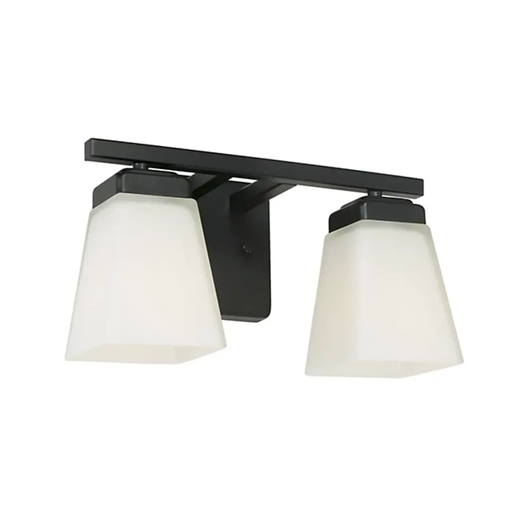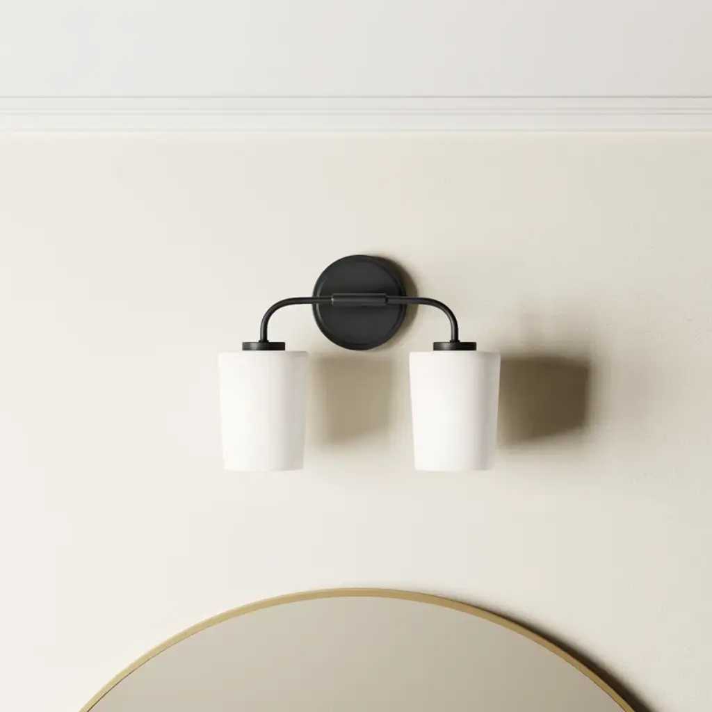 This vanity light has a minimalist, pared-down silhouette that still manages to be super sleek. It's made from metal and mounted on a circular backplate with a thin, curved support arm. Two etched opal glass shades complete the look as they filter light from 100W bulbs (sold separately). We especially love this vanity light for its versatility: In addition to being easy to pair with almost anything, it's compatible with dimmer switches and safe to use in damp locations.