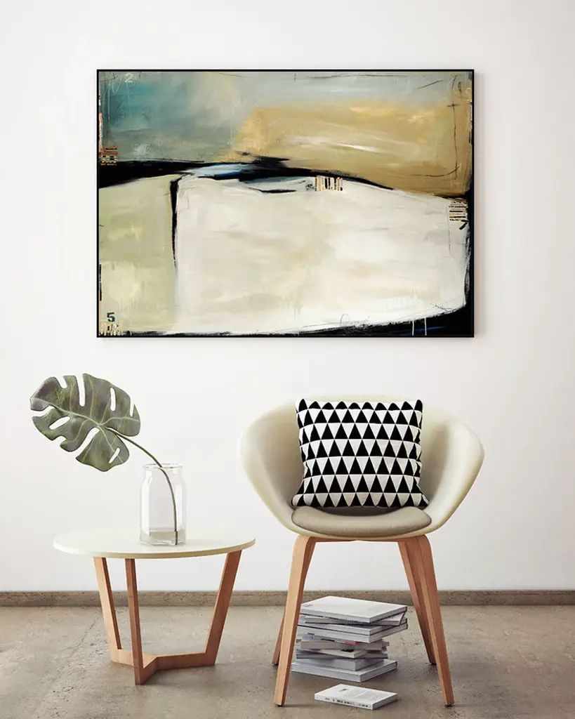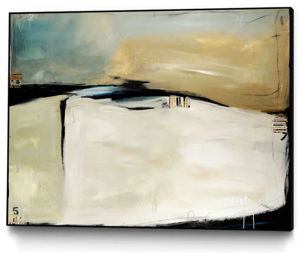 Your ready to hang artwork is printed on canvas then stretched and mounted to a 2-inch thick - hand stained black wood frame. Arrives at your door complete with an easy to use self-leveling hangking kit.