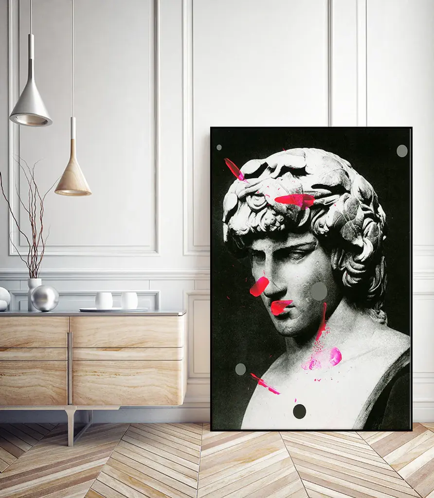 Your ready to hang artwork is printed on canvas then stretched and mounted to a 2-inch thick - hand stained black wood frame. Arrives at your door complete with an easy to use self-leveling hangking kit.