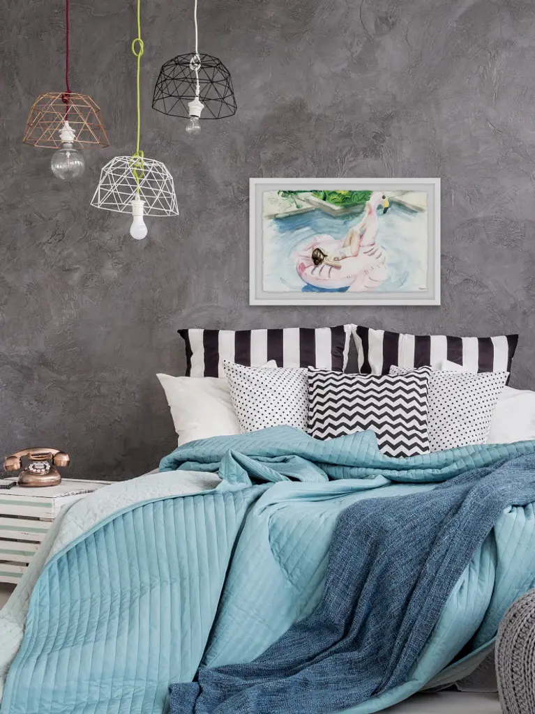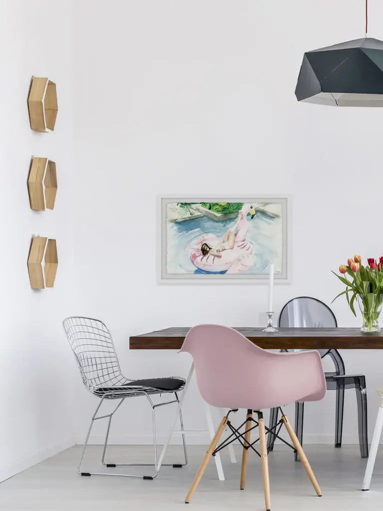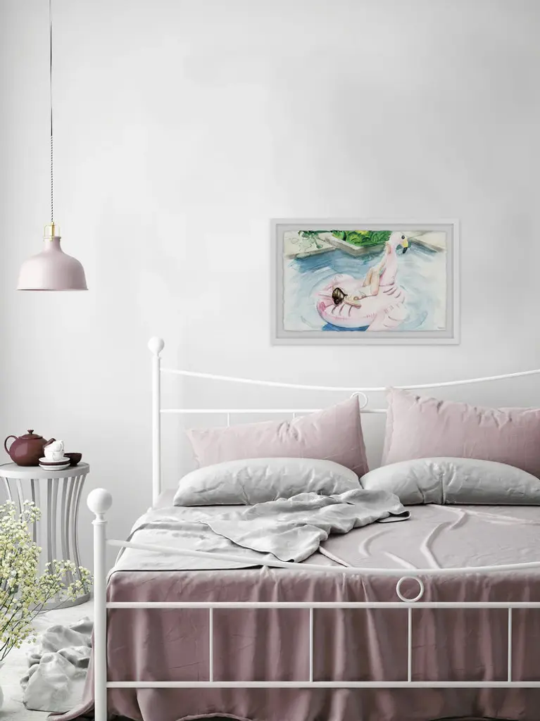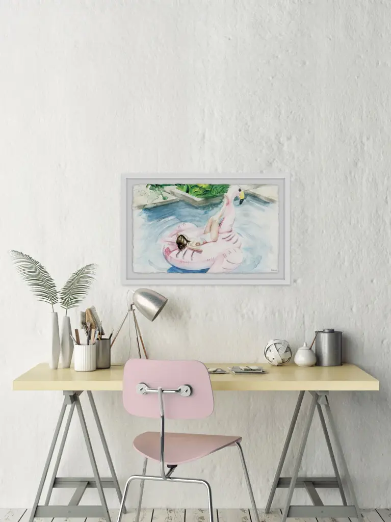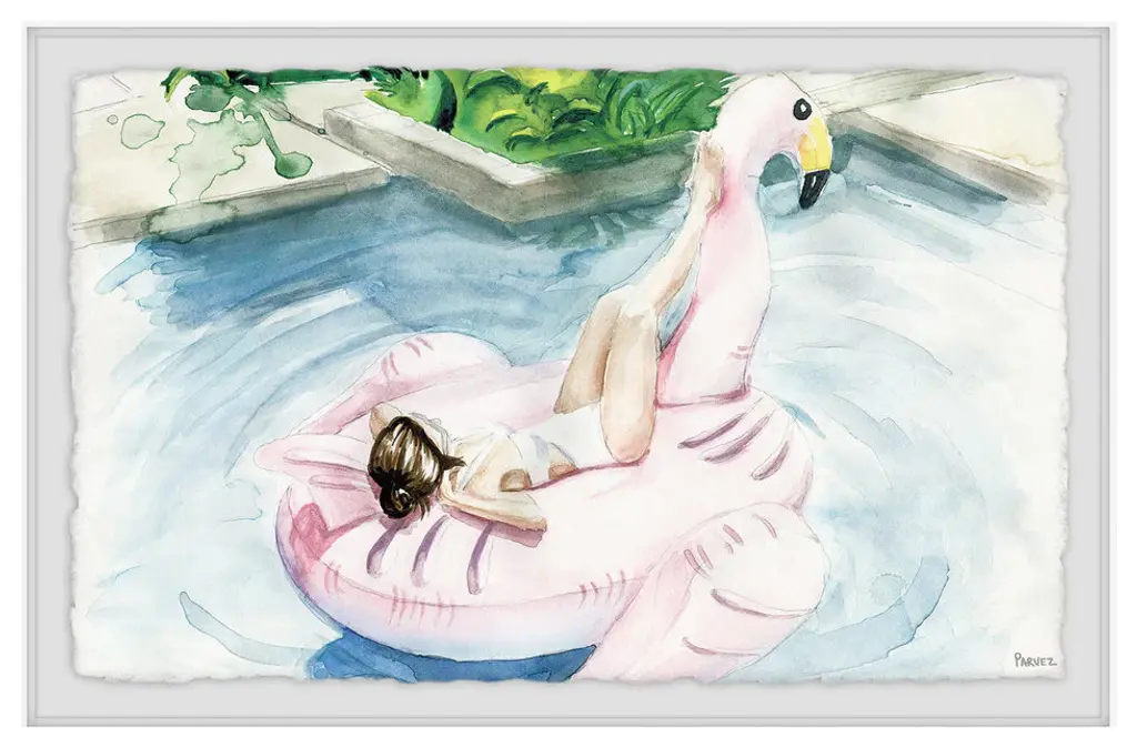 "Flamingo Floater" Framed Painting Print, 24"x16"