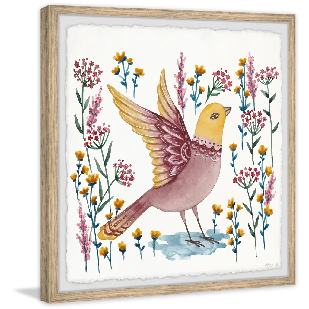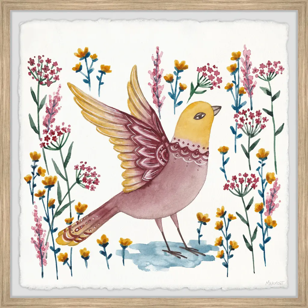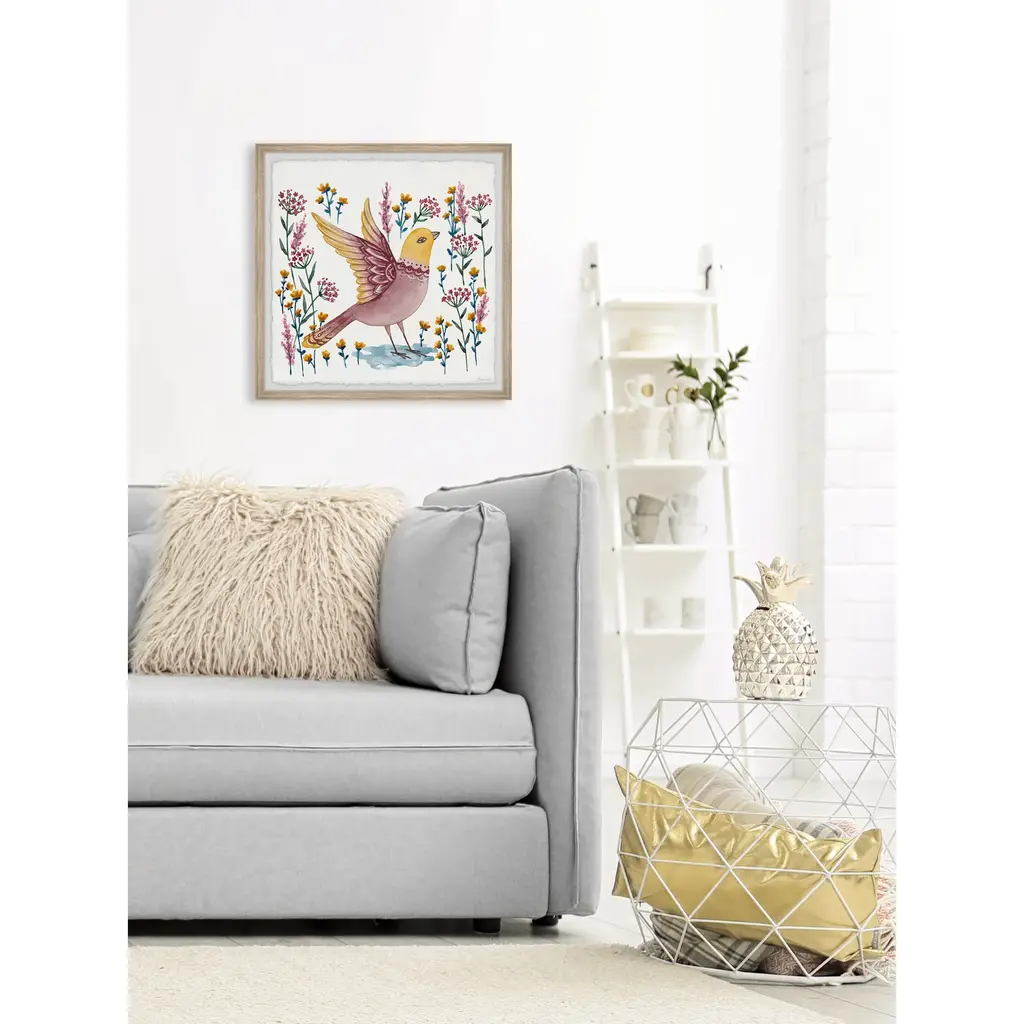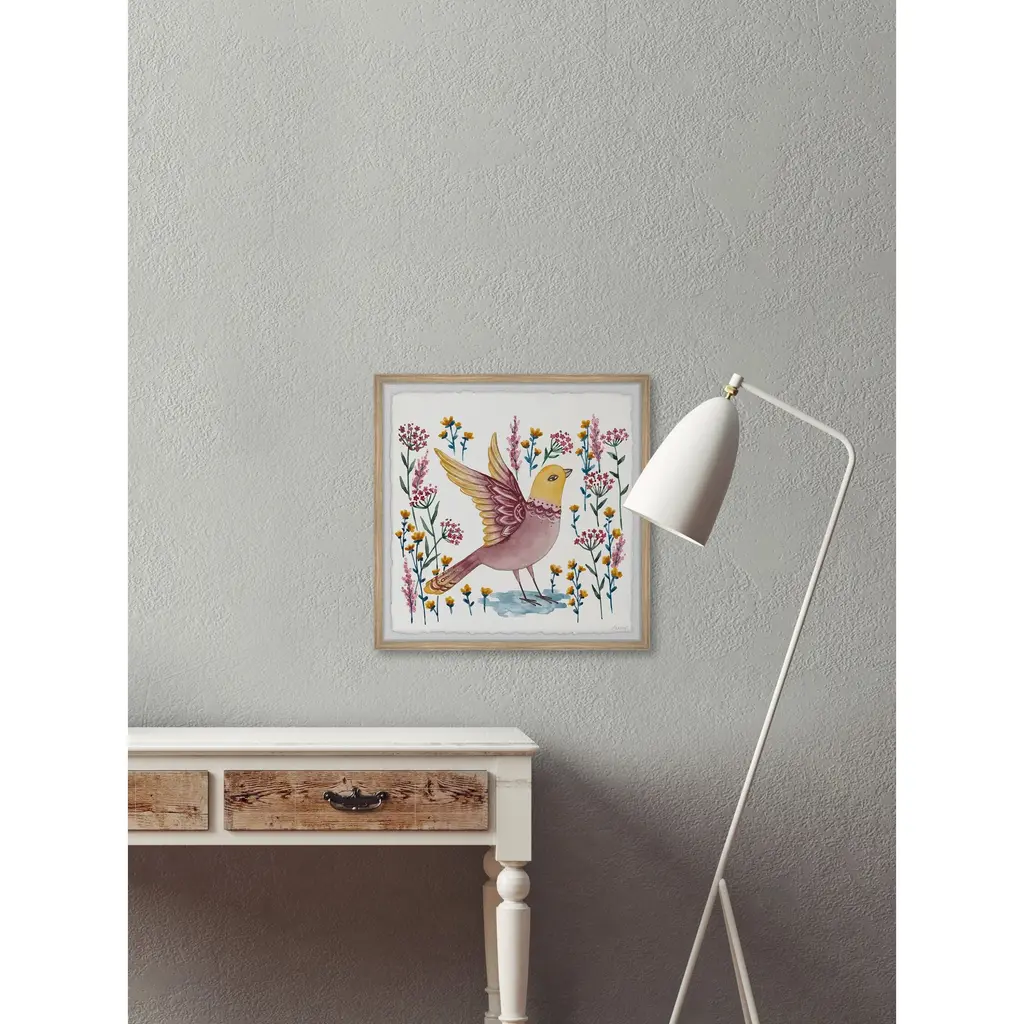 This watercolor painting print will give you a burst of positive energy— featuring a pink and yellow bird surrounded by pink and yellow flowers. Proudly printed in the USA, this piece is printed on high quality archive paper and professionally hand-framed. With wall-mounting hooks included, this artful accent is ready to hang up as soon as it reaches your front door. • Top quality Giclée print on high resolution Archive Paper • Hand cut deckled edges • High quality durable non-warping frame • Finished under shatter resistant plexiglass • Arrives ready to hang • Includes a certificate of authenticity • Printed in the USA