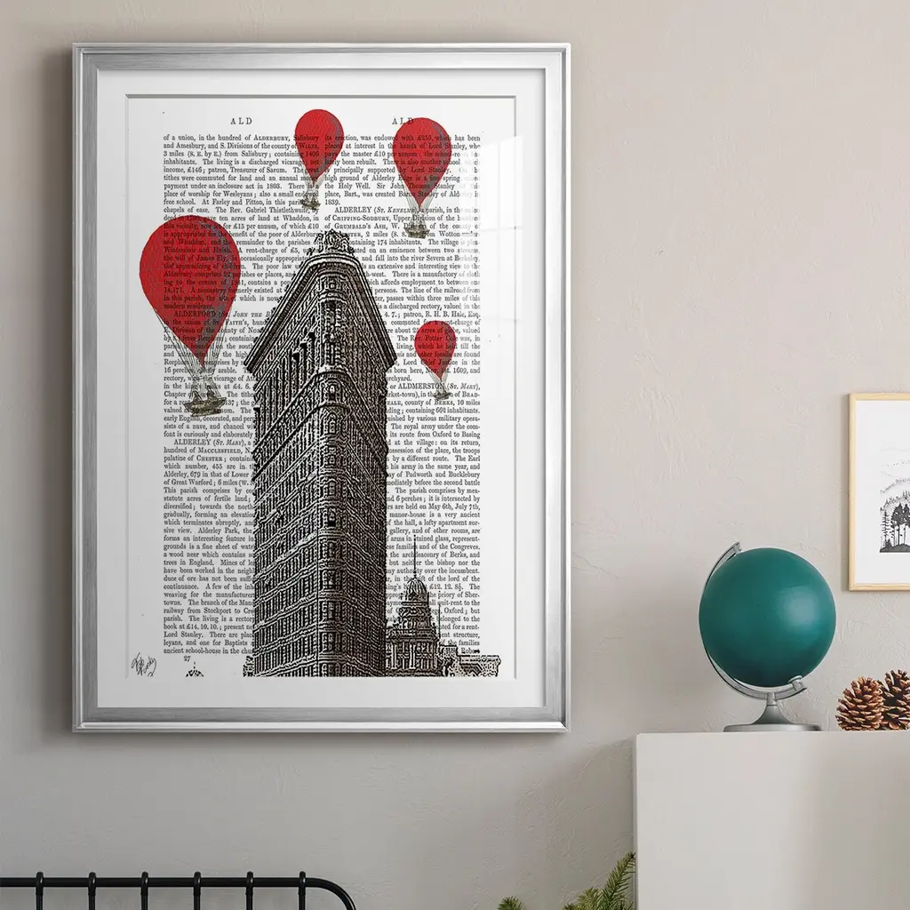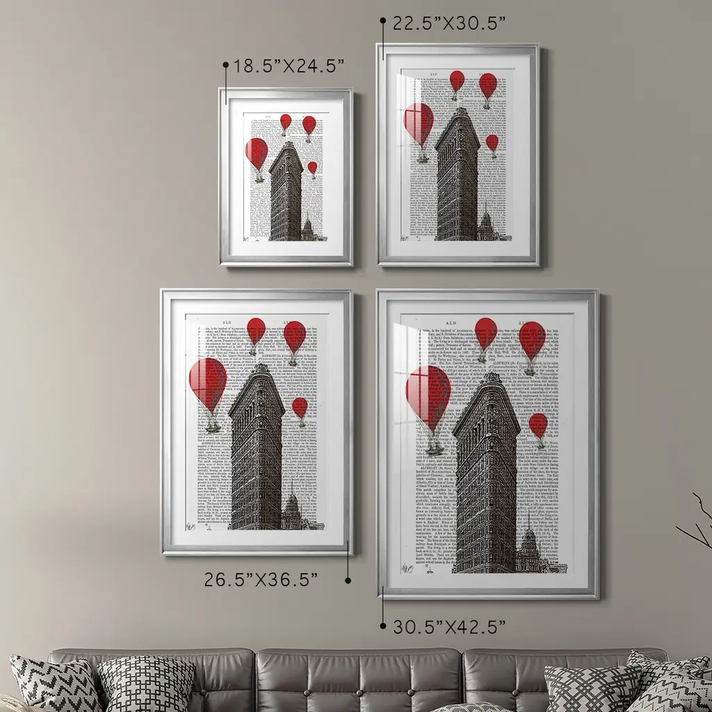 Flat Iron Building And Red Hot Air Balloons Premium Framed Print - Ready To Hang - 26.5x36.5 - Black