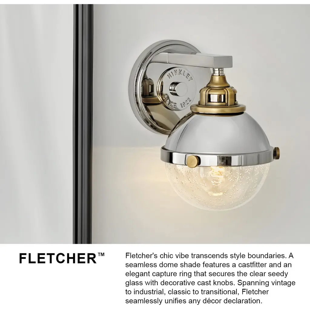 Fletcher's chic vibe transcends style boundaries. A seamless dome shade features a cast-fitter and an elegant capture ring that secures the clear seedy glass with decorative cast knobs. Spanning vintage to industrial, classic to transitional, Fletcher seamlessly unifies any décor declaration.