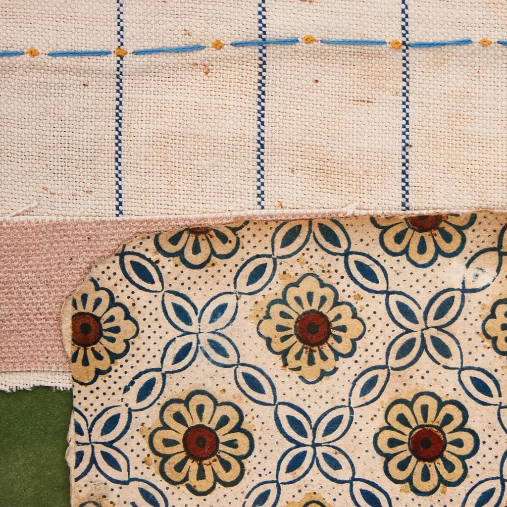 A scanned collage of French paper from the 1700s by artist Shaina Page, bringing color and visual interest. Handmade in Austin, TX.