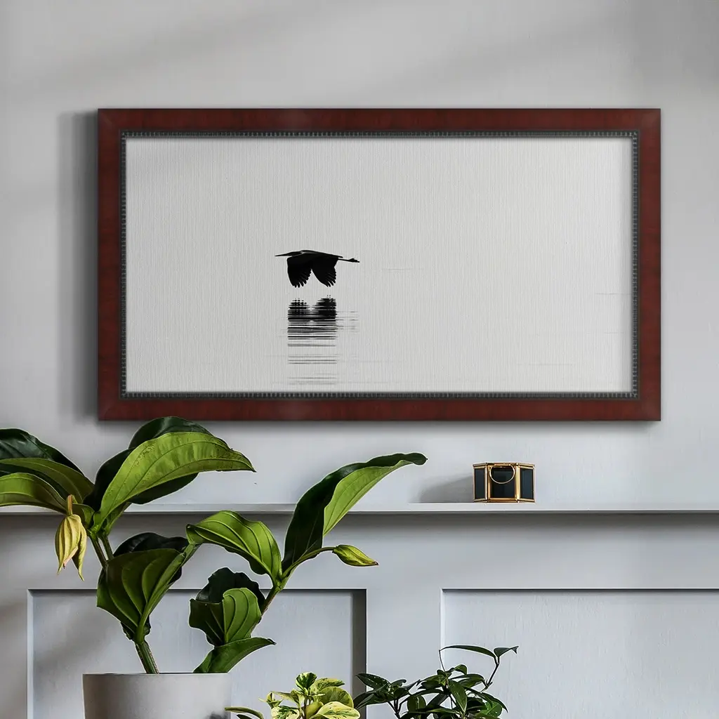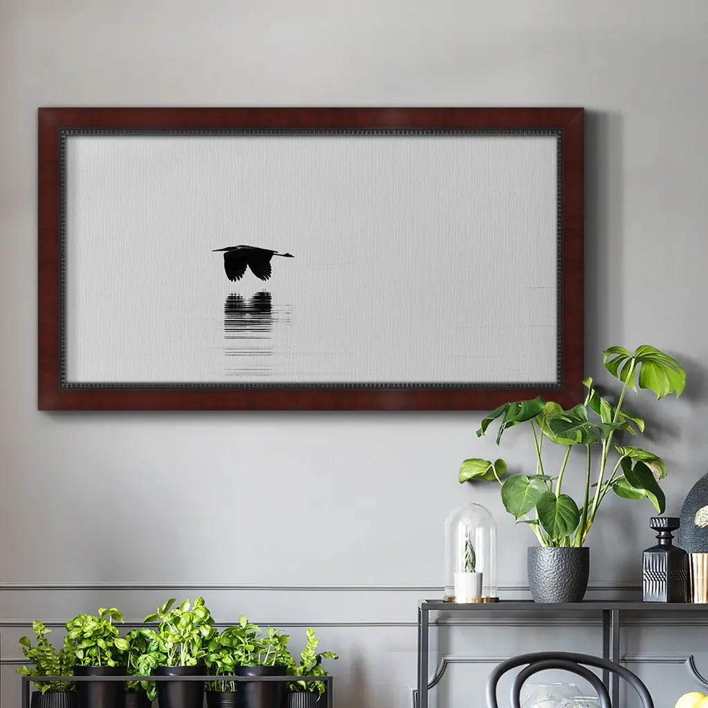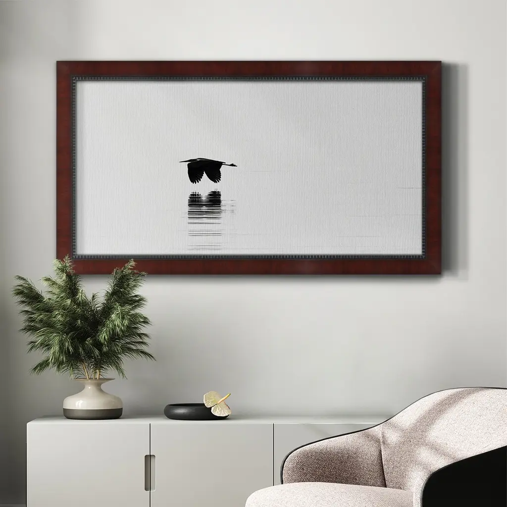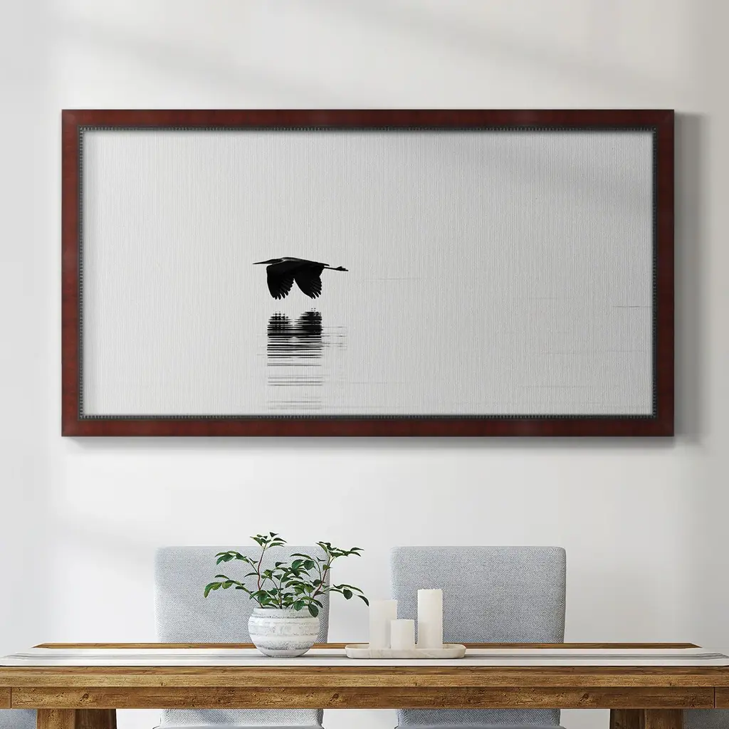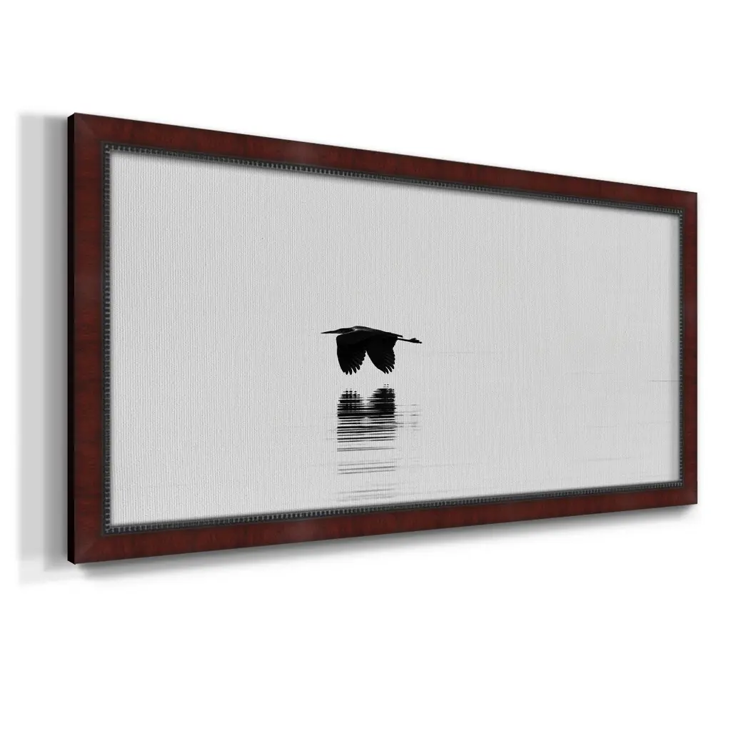 Flight Premium Framed Canvas- Ready to Hang A Premium Framed Canvas created to last. Framed in distressed wood and available in an array of sizes and colors Featuring a beveled a solid wood stretcher bar, each piece comes ready to hand 3 SIZES AVAILABLE 21''X37'' - Overall Size 25''X45'' - Overall Size 29''x53'' - Overall Size Each piece is made to order. Each piece comes with hanging hardware. Made in the USA Ready to Hang Giclee Paper Print Acrylic Glass Beveled Matt Board