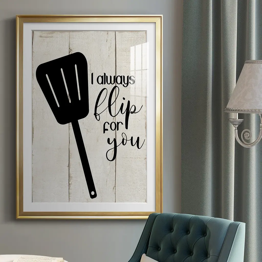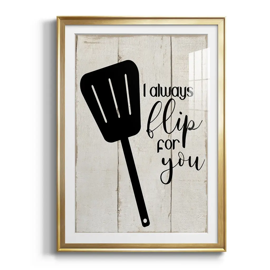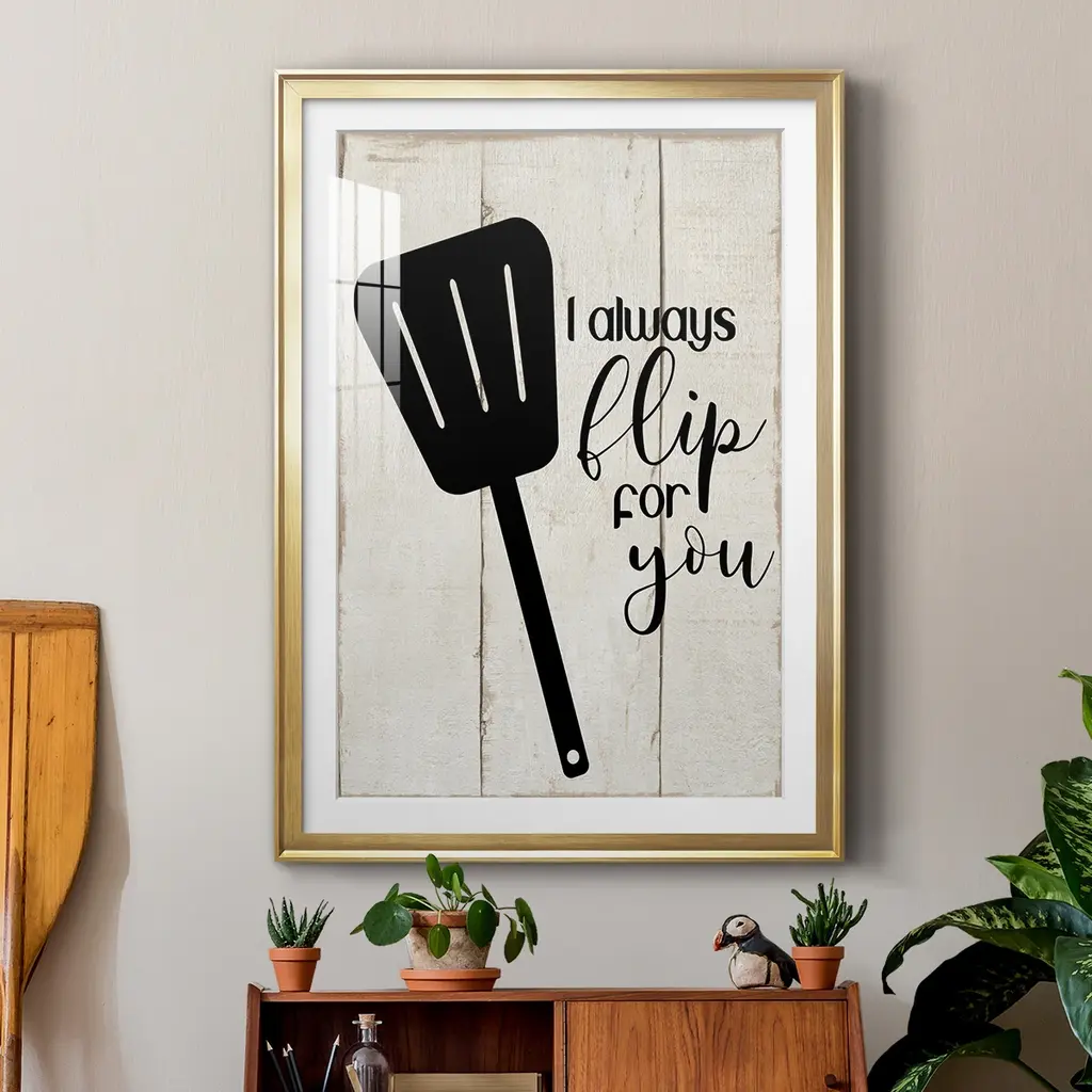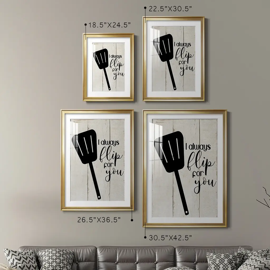 Flip For You Premium Framed Print - Ready to Hang A Premium Framed Print created to last. Framed in distressed wood and available in an array of sizes and colors Featuring a beveled a solid wood stretcher bar, each piece comes ready to hand 4 SIZES AVAILABLE 30.5''X42.5'' - Overall Size 26.5'X36.5'' - Overall Size 22.5''x30.5'' - Overall Size 18.5''x24.5'' - Overall Size Each piece is made to order. Each piece comes with hanging hardware. Made in the USA Ready to Hang Giclee Paper Print Acrylic Glass Beveled Matt Board
