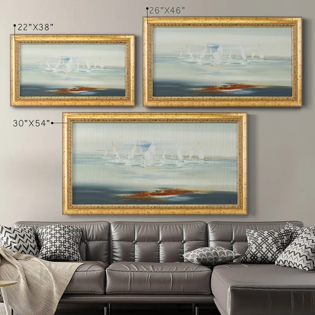 Float Away Premium Framed Canvas- Ready to Hang A Premium Framed Canvas created to last. Framed in distressed wood and available in an array of sizes and colors Featuring a beveled a solid wood stretcher bar, each piece comes ready to hand 3 SIZES AVAILABLE 21''X37'' - Overall Size 25''X45'' - Overall Size 29''x53'' - Overall Size Each piece is made to order. Each piece comes with hanging hardware. Made in the USA Ready to Hang Giclee Paper Print Acrylic Glass Beveled Matt Board