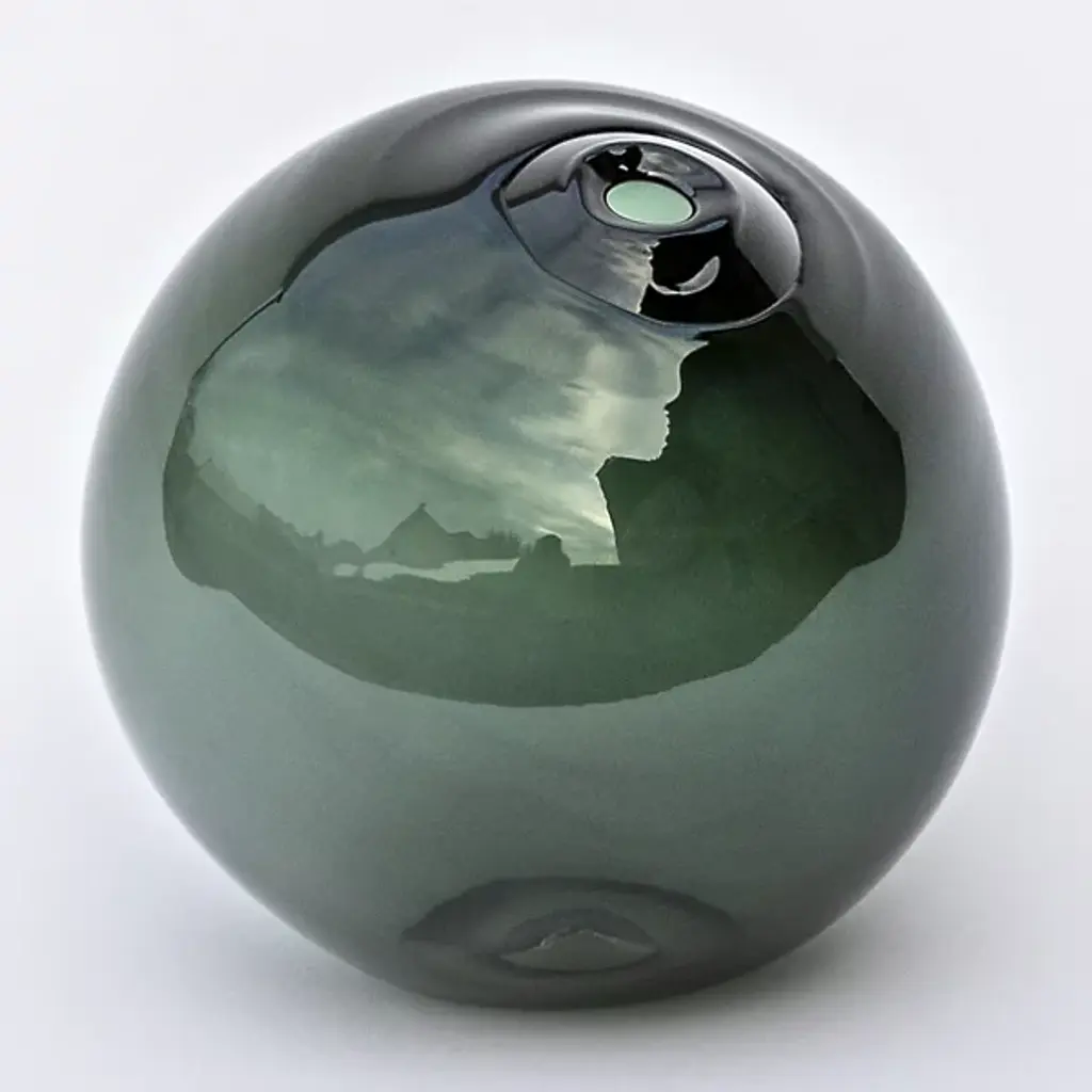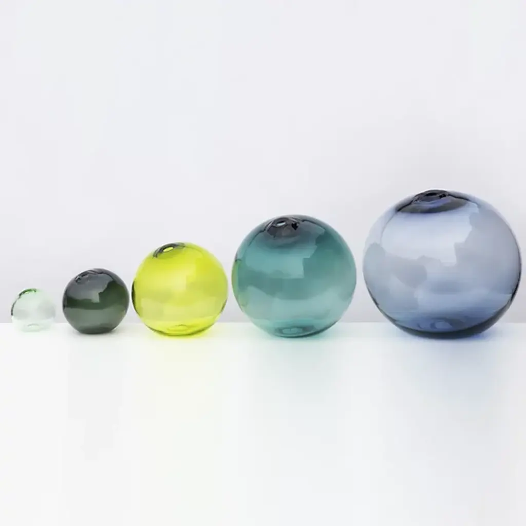SkLO's Float Vessel series is designed to be a custom art piece, with mixed colors and sizes. Whether a small vignette or a large installation, these pieces create a relationship to one another and glow in any space they inhabit. Double-dipped into molten glass to create a slight ripple near the top, the Float Vessel is then broken off the pipe and torch-polished to create the opening. Each Float Vessel is a unique, one-of-a-kind piece.