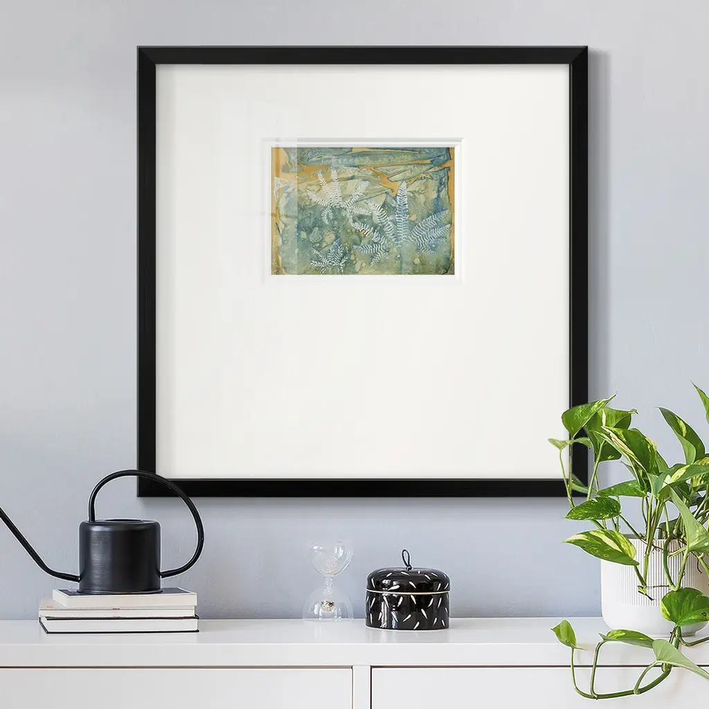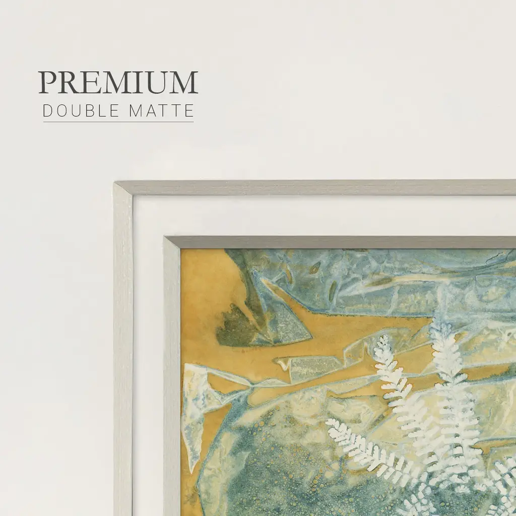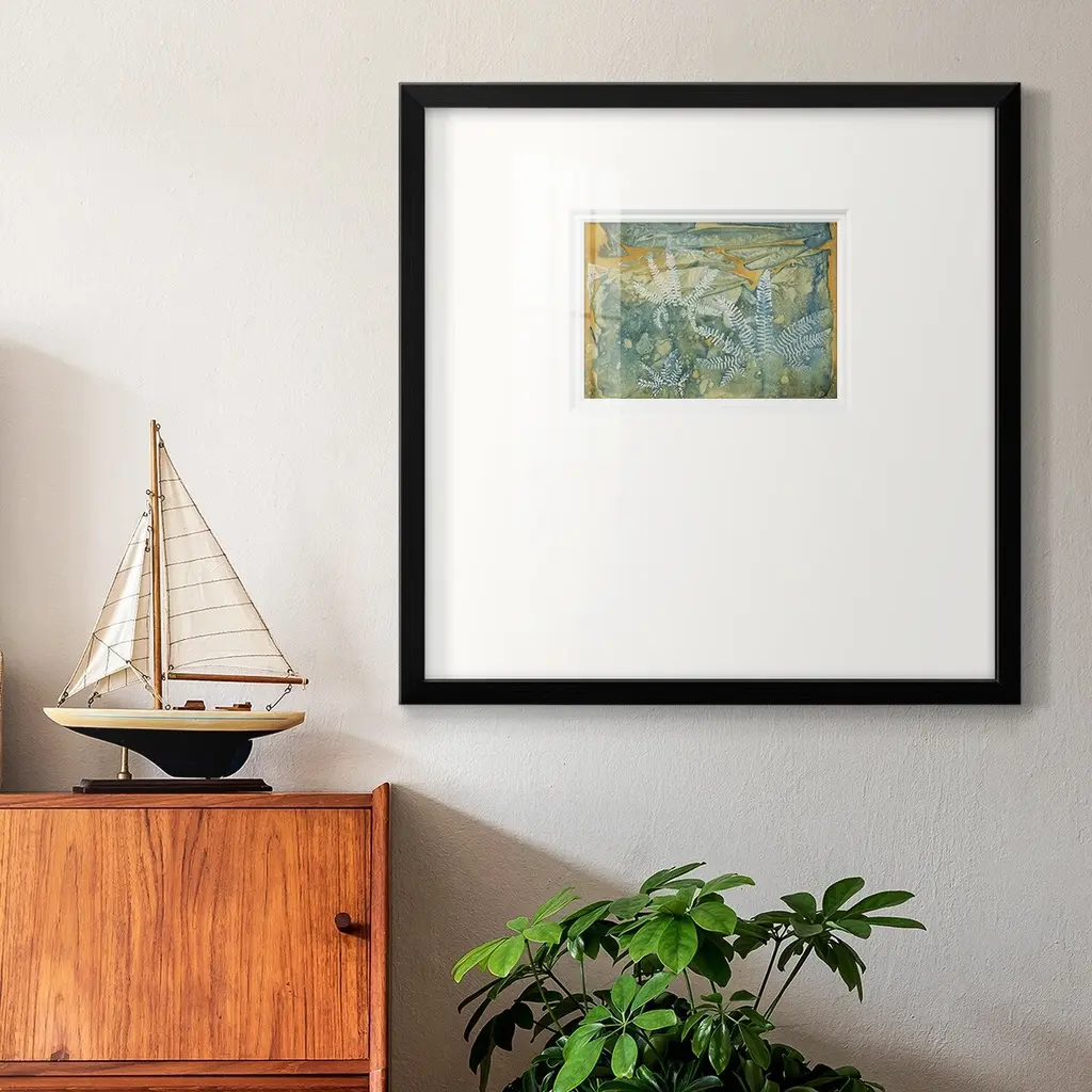 Floating FernsPremium Framed Print A framed cold pressed paper print featuring superior double matting and quality frame. 2 SIZES AVAILABLE 16''X16''' - Overall Size 20''X20''' - Overall Size Each piece is made to order. Each piece comes with hanging hardware. Made in the USA Ready to Hang Giclee Paper Print Plexiglass Beveled Matt Board Double Matte Board