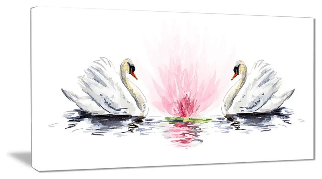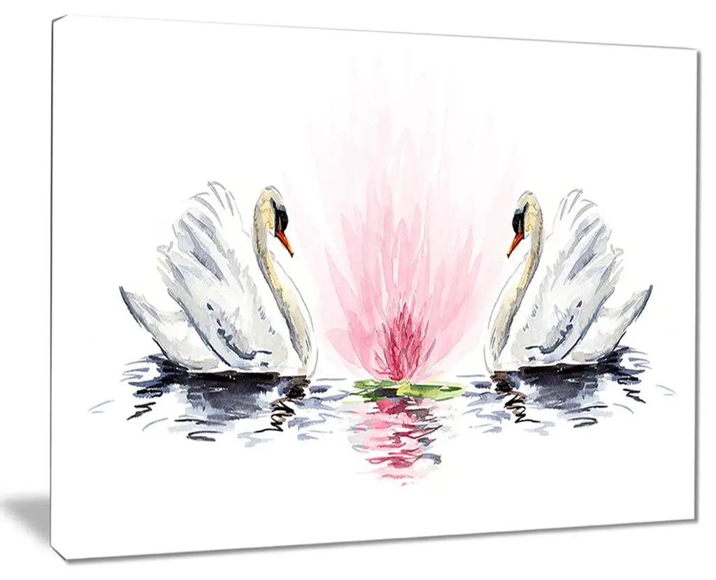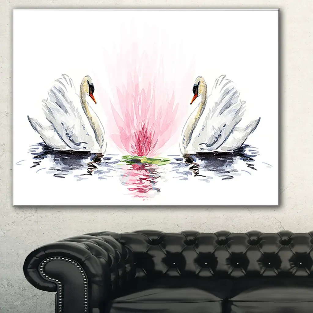 The Floating Swans on White Background canvas art print is sure to make an impression on anyone who sees it. This artwork is gallery wrapped around a 1-inch solid wood frame and arrives carefully packaged and entirely ready to hang on the wall. Design Art only uses the highest resolution and pigments to ensure a crisp colorful print that is never faded or pixelated. This artwork is sure to be a conversation starter in any home or office.