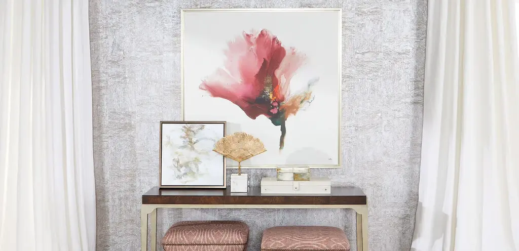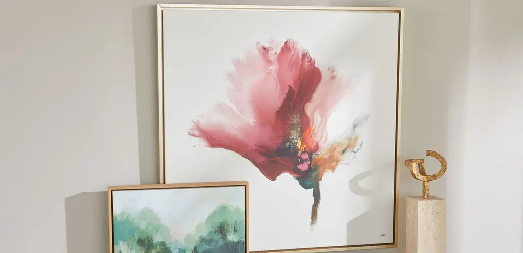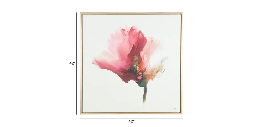 See the complexity within the simple watercolor flower captured in Flora Lustre. Bold, nature-inspired shades of sunset orange and leafy green burst into a flourishing gradient of red and pink—the flower's stunning petals. This grand piece is a beautiful way to add bright color to a wall.