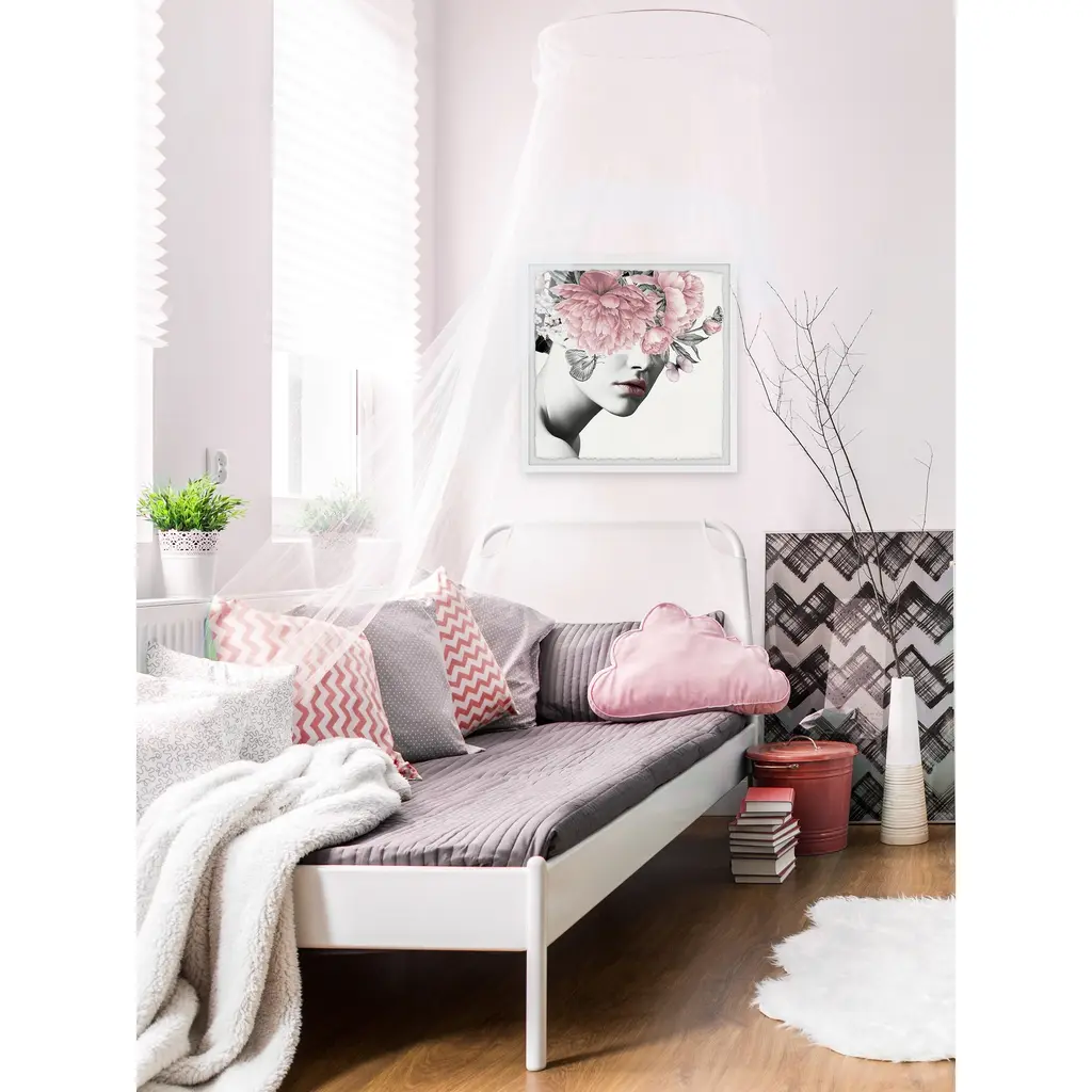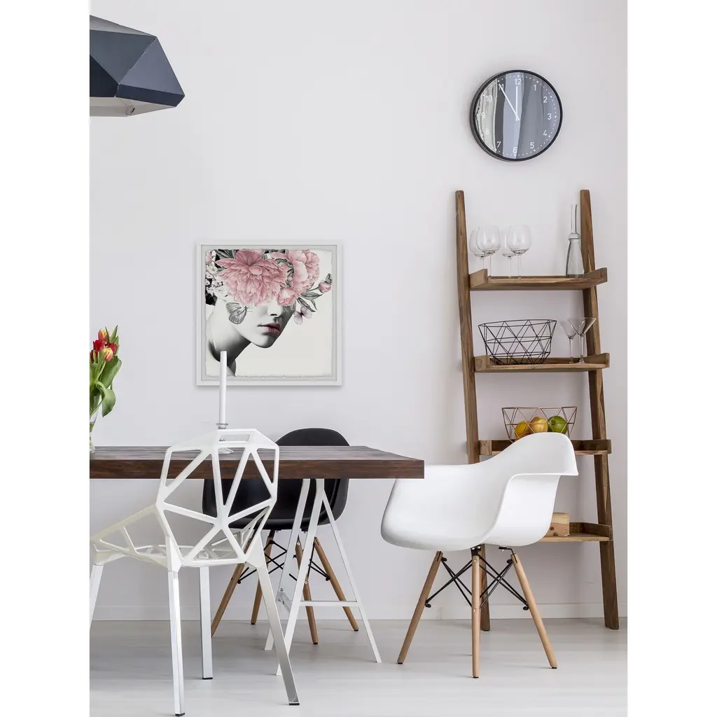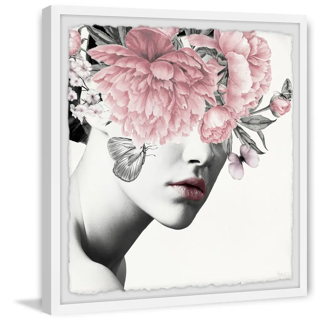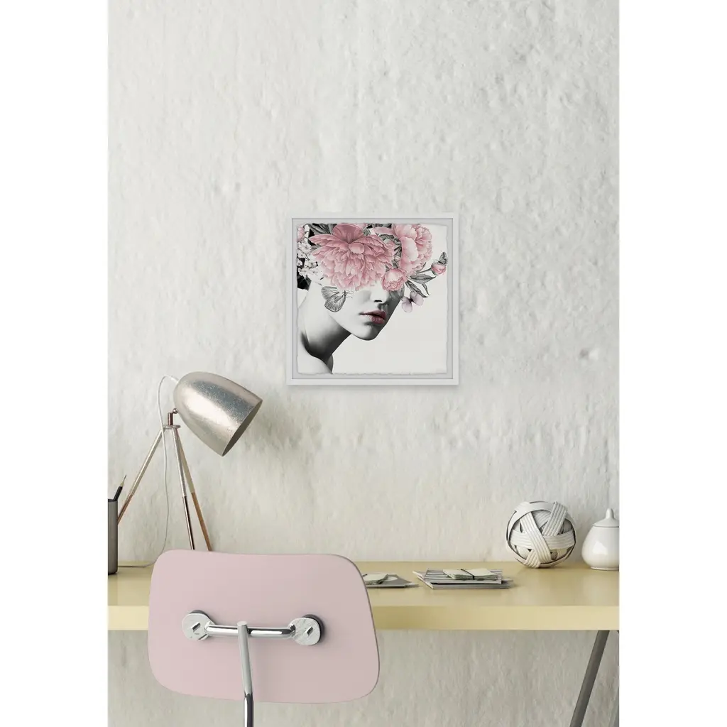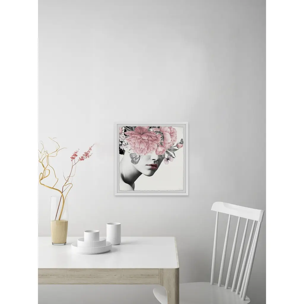 'Floral And Lipstick' Framed Painting Print - Multi-Color - 24 X 24