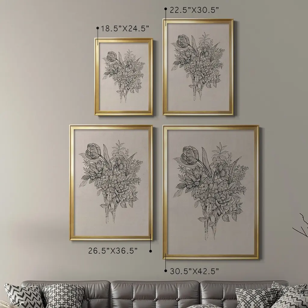 Floral Bouquet I Premium Framed Print - Ready to Hang A Premium Framed Print created to last. Framed in distressed wood and available in an array of sizes and colors Featuring a beveled a solid wood stretcher bar, each piece comes ready to hand 4 SIZES AVAILABLE 30.5''X42.5'' - Overall Size 26.5'X36.5'' - Overall Size 22.5''x30.5'' - Overall Size 18.5''x24.5'' - Overall Size Each piece is made to order. Each piece comes with hanging hardware. Made in the USA Ready to Hang