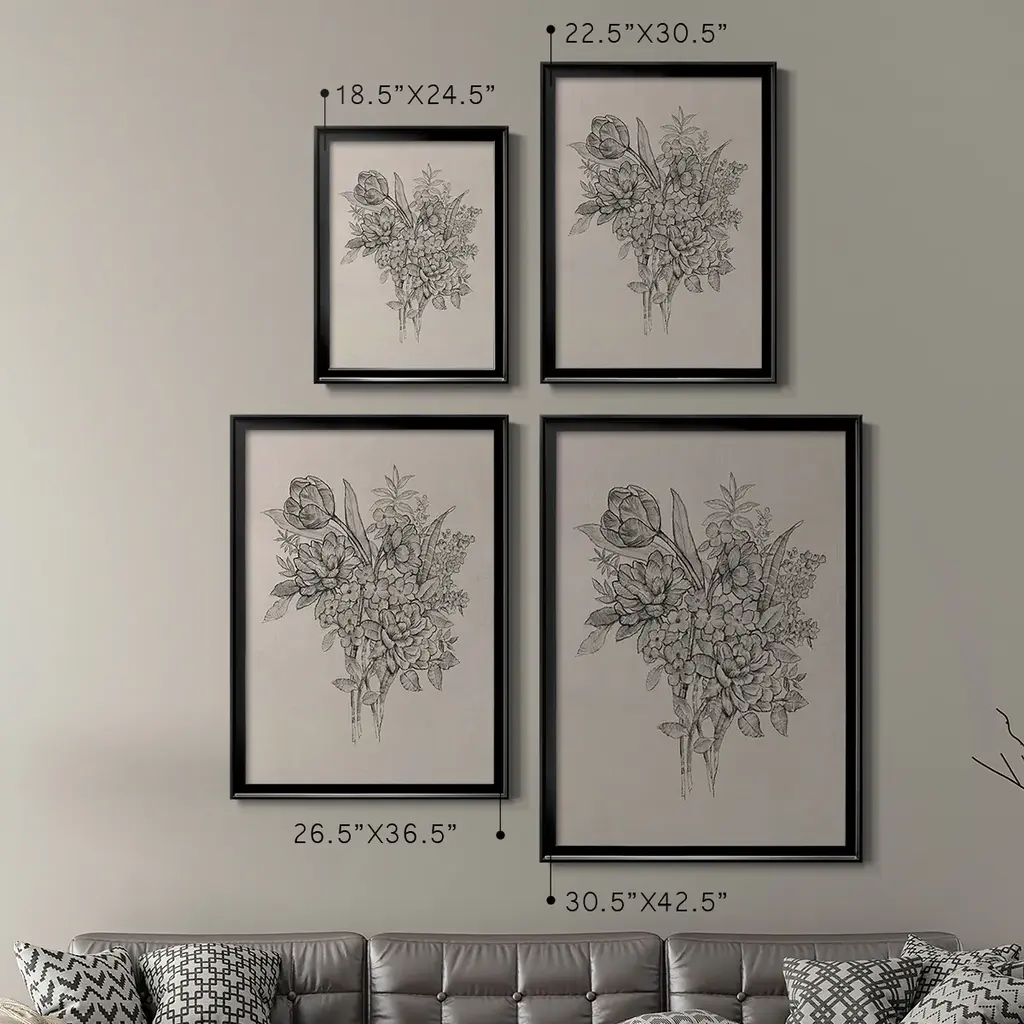 Floral Bouquet I Premium Framed Print - Ready to Hang A Premium Framed Print created to last. Framed in distressed wood and available in an array of sizes and colors Featuring a beveled a solid wood stretcher bar, each piece comes ready to hand 4 SIZES AVAILABLE 30.5''X42.5'' - Overall Size 26.5'X36.5'' - Overall Size 22.5''x30.5'' - Overall Size 18.5''x24.5'' - Overall Size Each piece is made to order. Each piece comes with hanging hardware. Made in the USA Ready to Hang