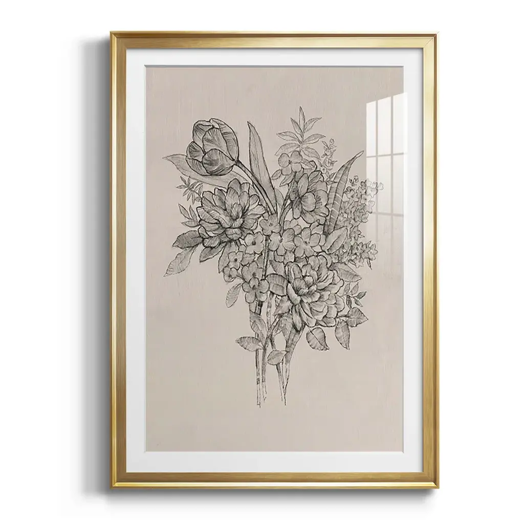 Floral Bouquet I Premium Framed Print - Ready to Hang A Premium Framed Print created to last. Framed in distressed wood and available in an array of sizes and colors Featuring a beveled a solid wood stretcher bar, each piece comes ready to hand 4 SIZES AVAILABLE 30.5''X42.5'' - Overall Size 26.5'X36.5'' - Overall Size 22.5''x30.5'' - Overall Size 18.5''x24.5'' - Overall Size Each piece is made to order. Each piece comes with hanging hardware. Made in the USA Ready to Hang Giclee Paper Print Acrylic Glass Beveled Matt Board