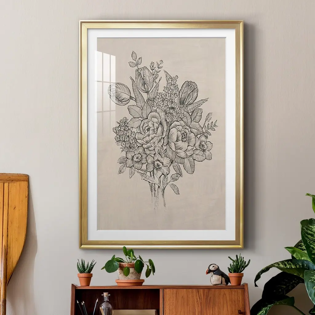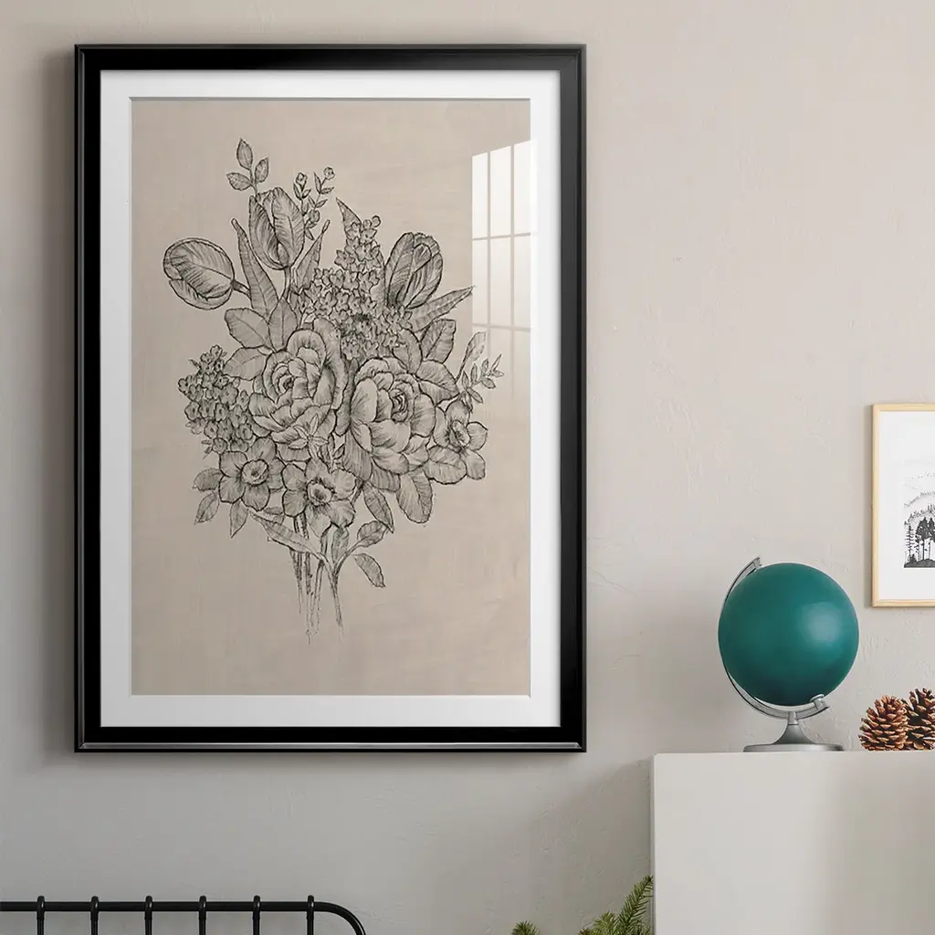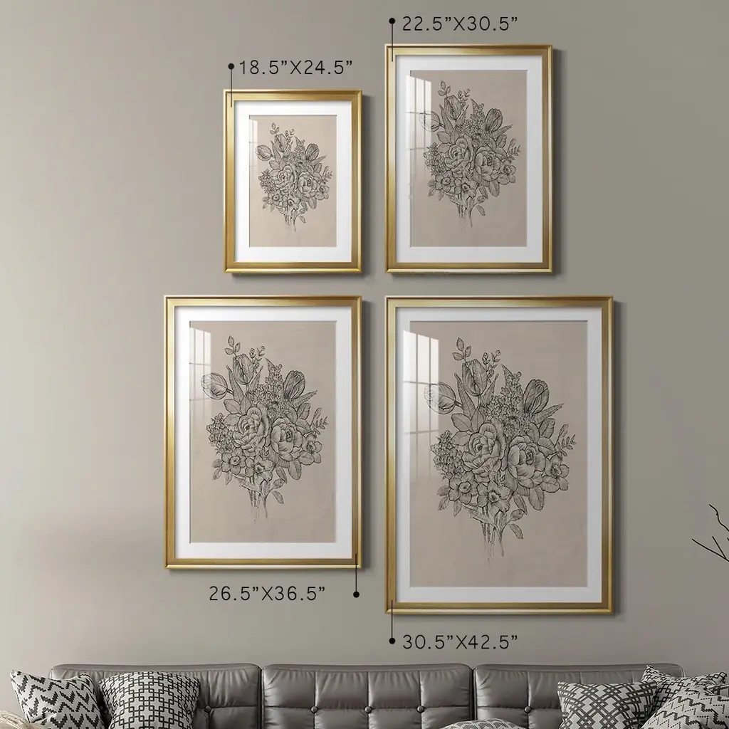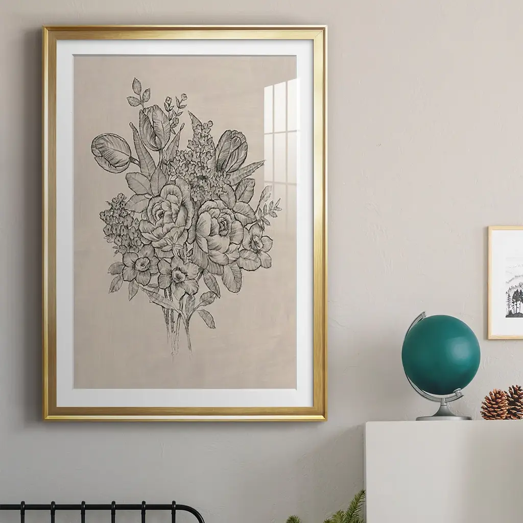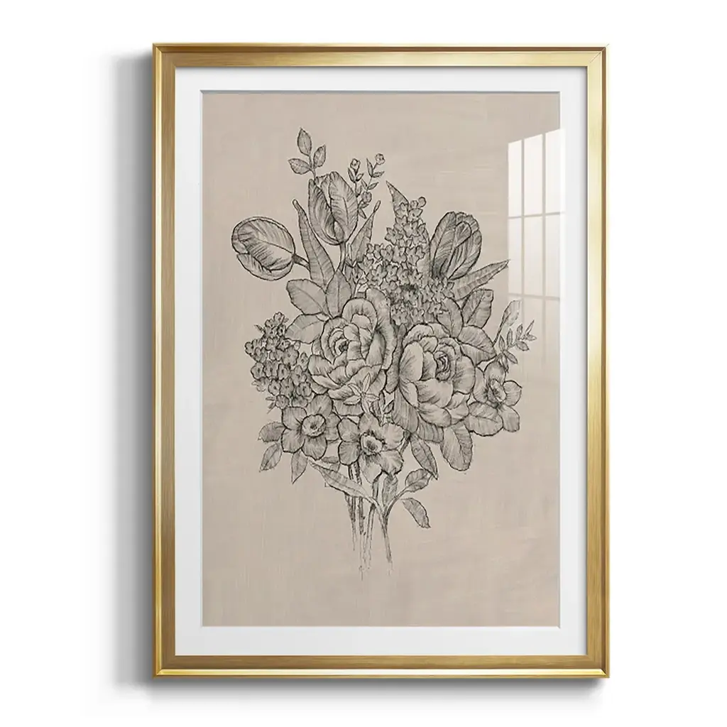 Floral Bouquet II Premium Framed Print - Ready to Hang A Premium Framed Print created to last. Framed in distressed wood and available in an array of sizes and colors Featuring a beveled a solid wood stretcher bar, each piece comes ready to hand 4 SIZES AVAILABLE 30.5''X42.5'' - Overall Size 26.5'X36.5'' - Overall Size 22.5''x30.5'' - Overall Size 18.5''x24.5'' - Overall Size Each piece is made to order. Each piece comes with hanging hardware. Made in the USA Ready to Hang Giclee Paper Print Acrylic Glass Beveled Matt Board