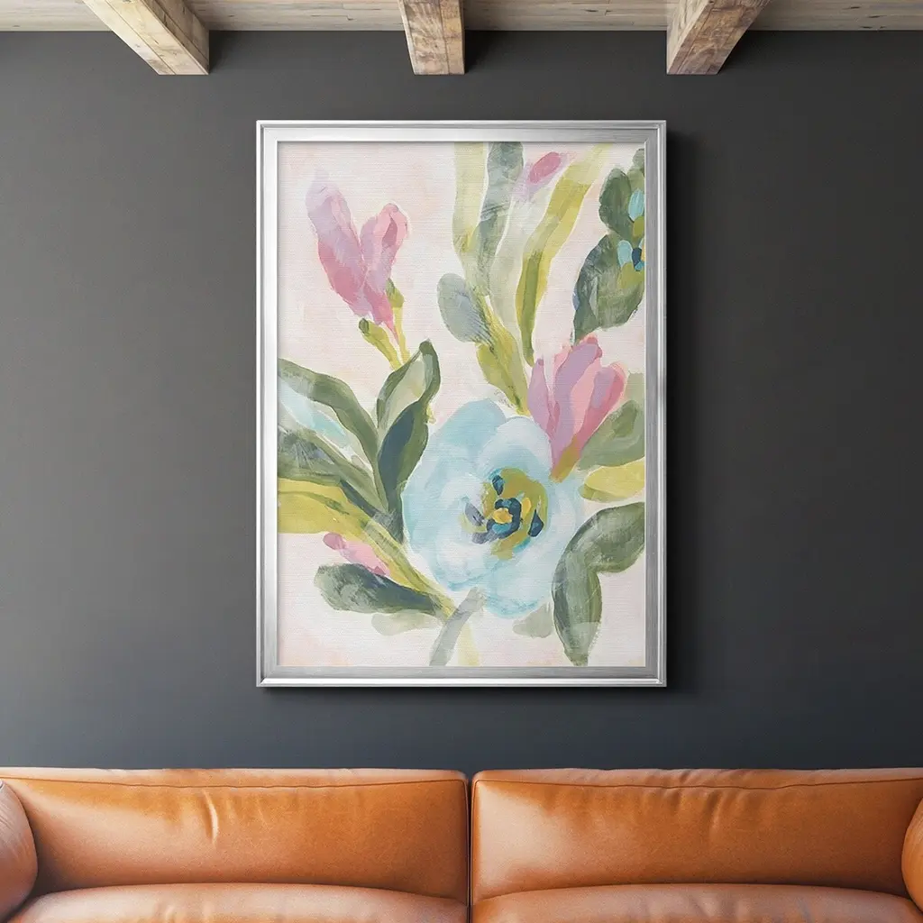 Floral Breeze Fresco II Premium Framed Print - Ready to Hang A Premium Framed Print created to last. Framed in distressed wood and available in an array of sizes and colors Featuring a beveled a solid wood stretcher bar, each piece comes ready to hand 4 SIZES AVAILABLE 30.5''X42.5'' - Overall Size 26.5'X36.5'' - Overall Size 22.5''x30.5'' - Overall Size 18.5''x24.5'' - Overall Size Each piece is made to order. Each piece comes with hanging hardware. Made in the USA Ready to Hang