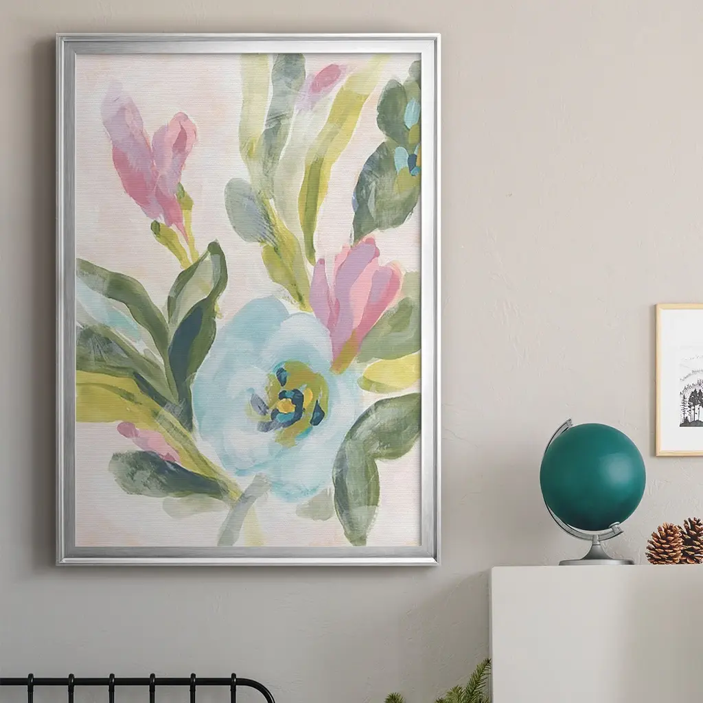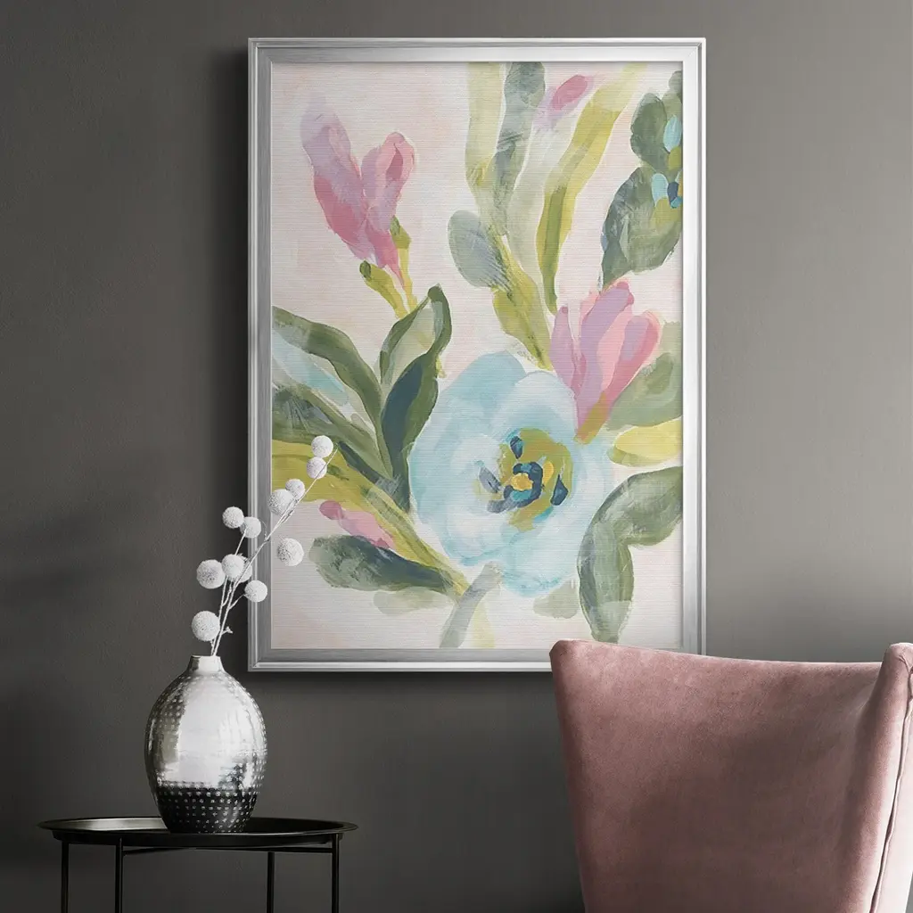 Floral Breeze Fresco II Premium Framed Print - Ready to Hang A Premium Framed Print created to last. Framed in distressed wood and available in an array of sizes and colors Featuring a beveled a solid wood stretcher bar, each piece comes ready to hand 4 SIZES AVAILABLE 30.5''X42.5'' - Overall Size 26.5'X36.5'' - Overall Size 22.5''x30.5'' - Overall Size 18.5''x24.5'' - Overall Size Each piece is made to order. Each piece comes with hanging hardware. Made in the USA Ready to Hang