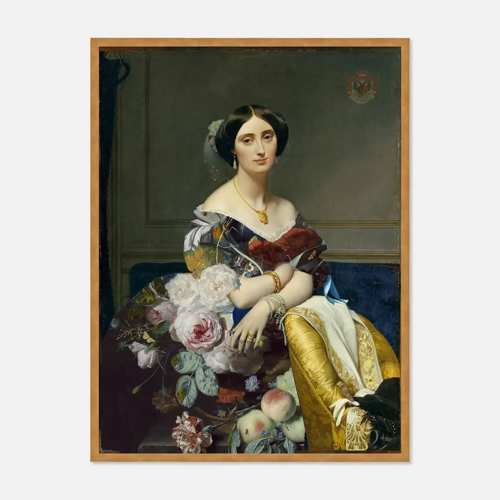 Floral Dress By Lara Fowler In Gold Frame, Xs Art Print