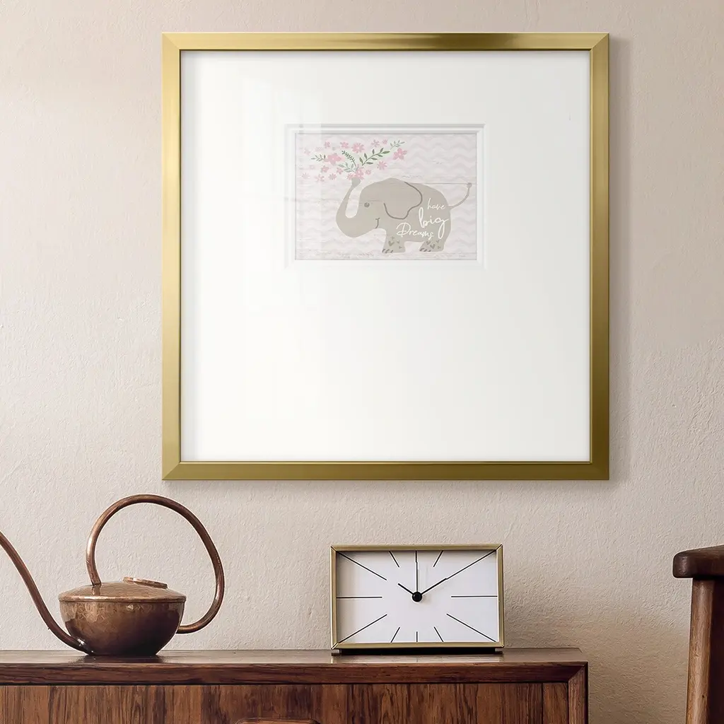 Floral ElephantPremium Framed Print A framed cold pressed paper print featuring superior double matting and quality frame. 2 SIZES AVAILABLE 16''X16''' - Overall Size 20''X20''' - Overall Size Each piece is made to order. Each piece comes with hanging hardware. Made in the USA Ready to Hang Giclee Paper Print Plexiglass Beveled Matt Board Double Matte Board