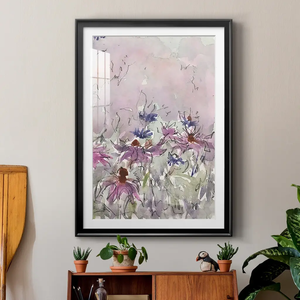 Floral Entertainment I Premium Framed Print - Ready to Hang A Premium Framed Print created to last. Framed in distressed wood and available in an array of sizes and colors Featuring a beveled a solid wood stretcher bar, each piece comes ready to hand 4 SIZES AVAILABLE 30.5''X42.5'' - Overall Size 26.5'X36.5'' - Overall Size 22.5''x30.5'' - Overall Size 18.5''x24.5'' - Overall Size Each piece is made to order. Each piece comes with hanging hardware. Made in the USA Ready to Hang Giclee Paper Print Acrylic Glass Beveled Matt Board
