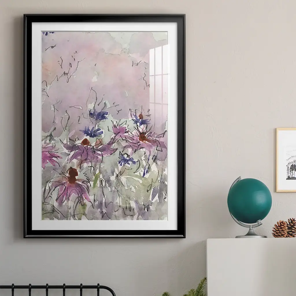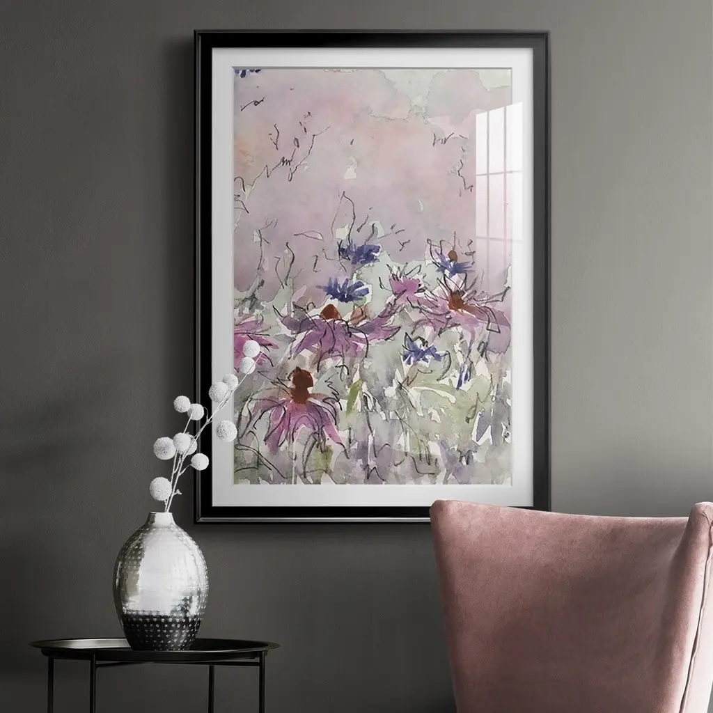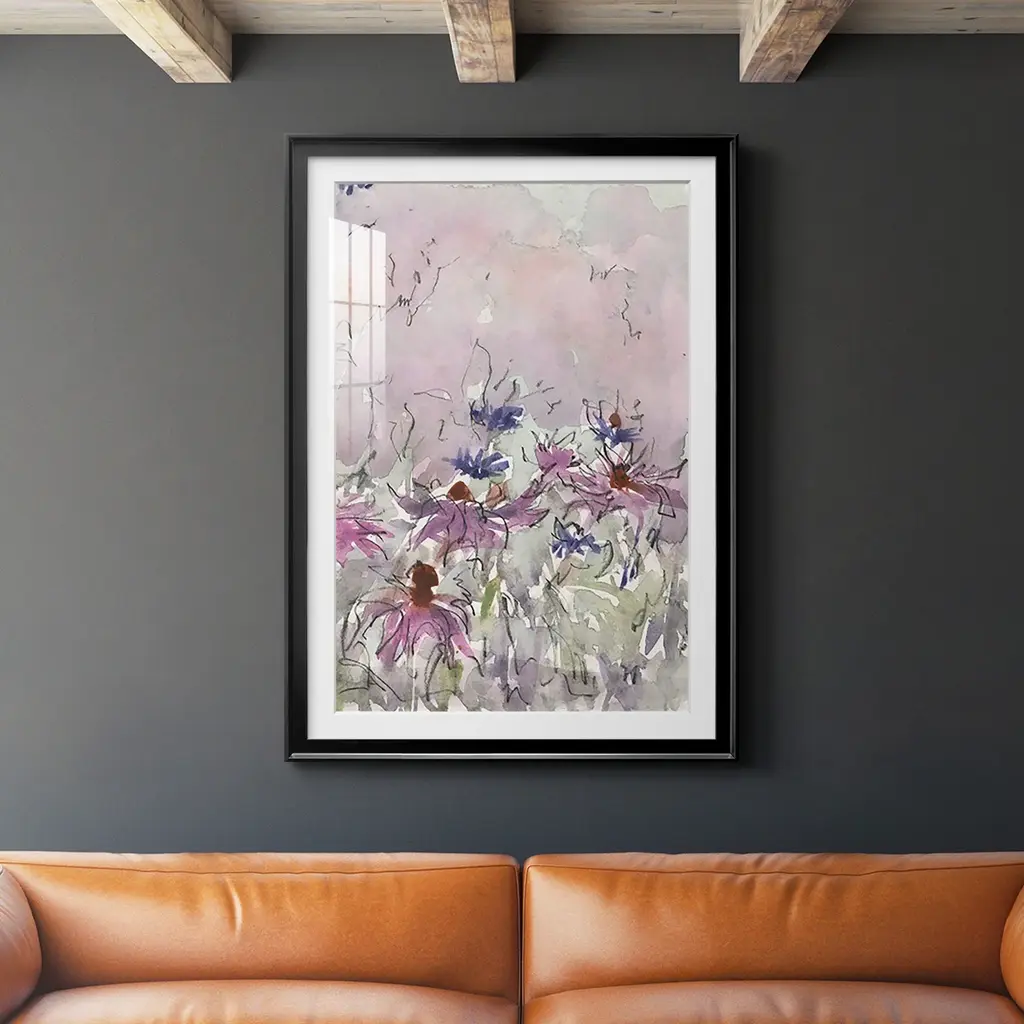 Floral Entertainment I Premium Framed Print - Ready to Hang A Premium Framed Print created to last. Framed in distressed wood and available in an array of sizes and colors Featuring a beveled a solid wood stretcher bar, each piece comes ready to hand 4 SIZES AVAILABLE 30.5''X42.5'' - Overall Size 26.5'X36.5'' - Overall Size 22.5''x30.5'' - Overall Size 18.5''x24.5'' - Overall Size Each piece is made to order. Each piece comes with hanging hardware. Made in the USA Ready to Hang Giclee Paper Print Acrylic Glass Beveled Matt Board
