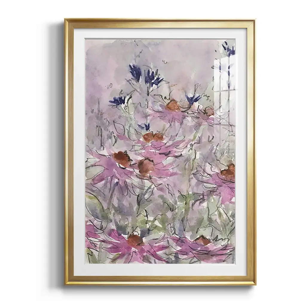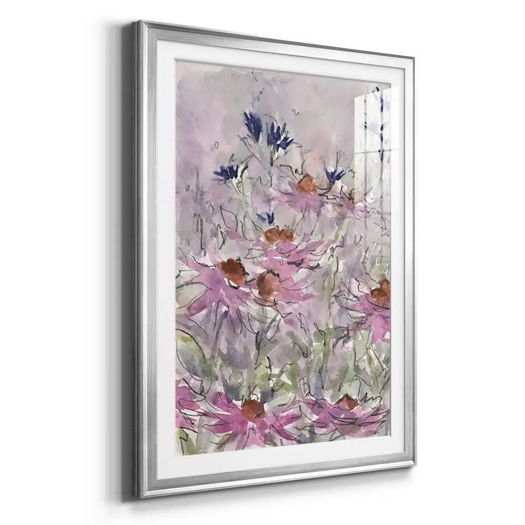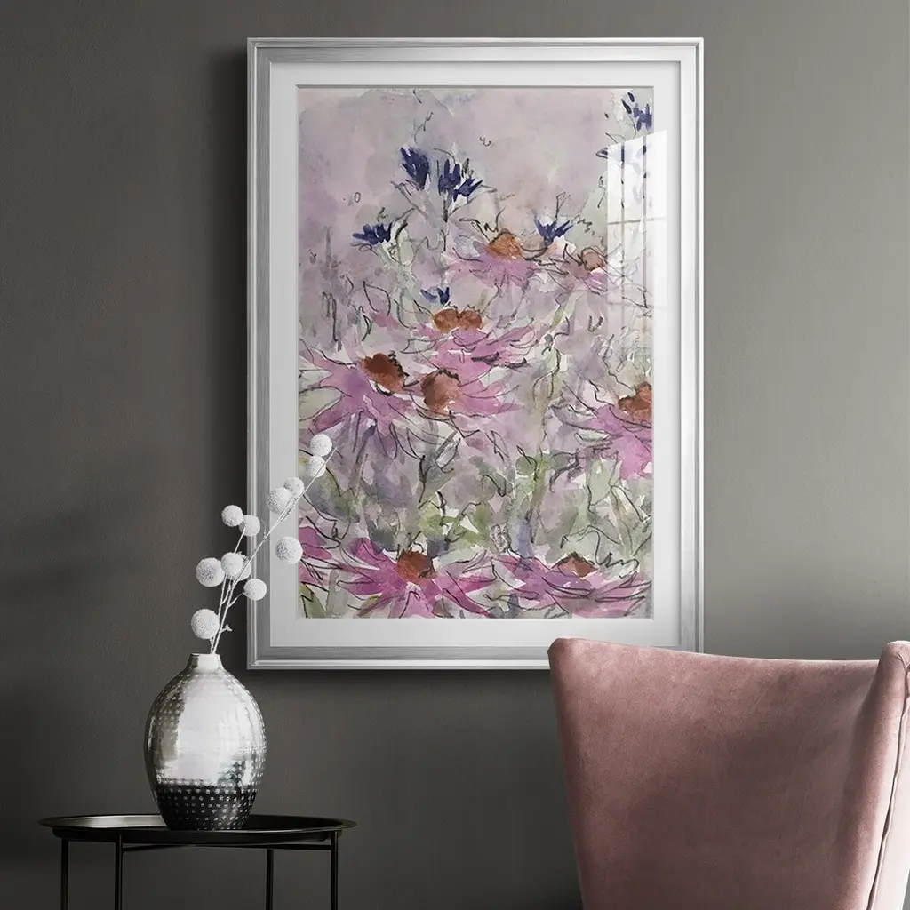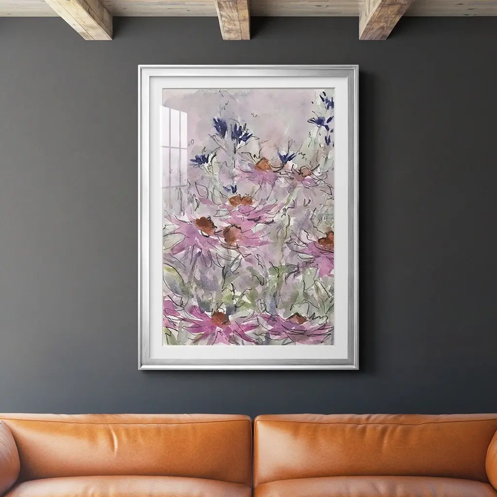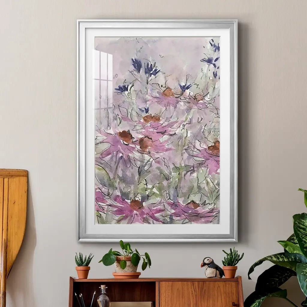 Floral Entertainment II Premium Framed Print - Ready to Hang A Premium Framed Print created to last. Framed in distressed wood and available in an array of sizes and colors Featuring a beveled a solid wood stretcher bar, each piece comes ready to hand 4 SIZES AVAILABLE 30.5''X42.5'' - Overall Size 26.5'X36.5'' - Overall Size 22.5''x30.5'' - Overall Size 18.5''x24.5'' - Overall Size Each piece is made to order. Each piece comes with hanging hardware. Made in the USA Ready to Hang Giclee Paper Print Acrylic Glass Beveled Matt Board