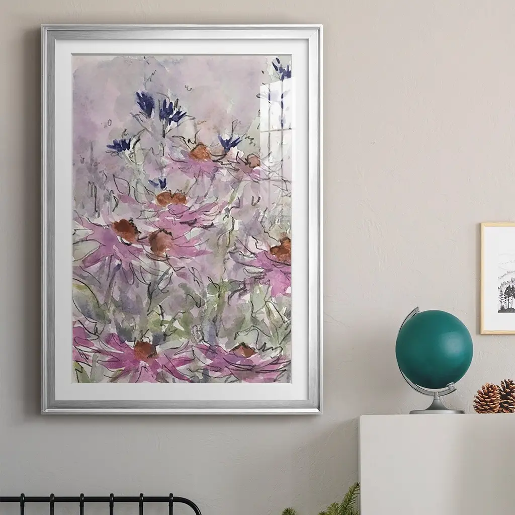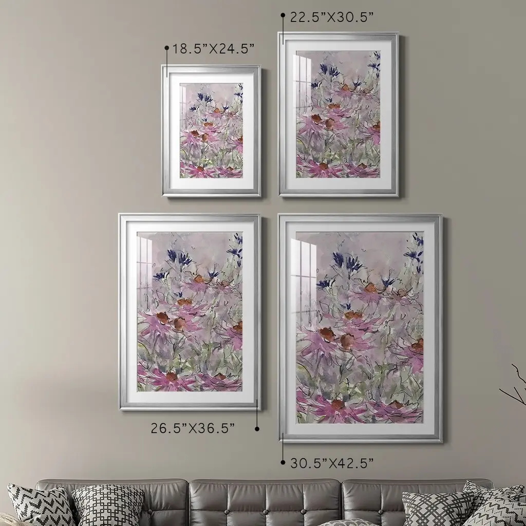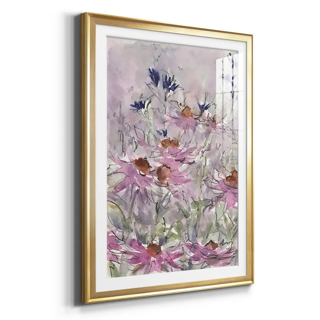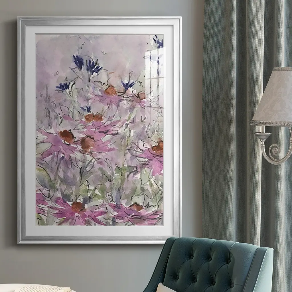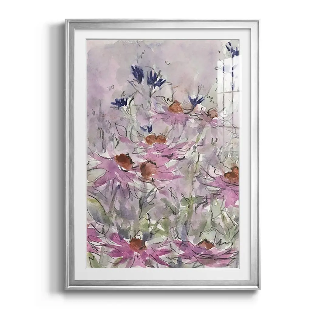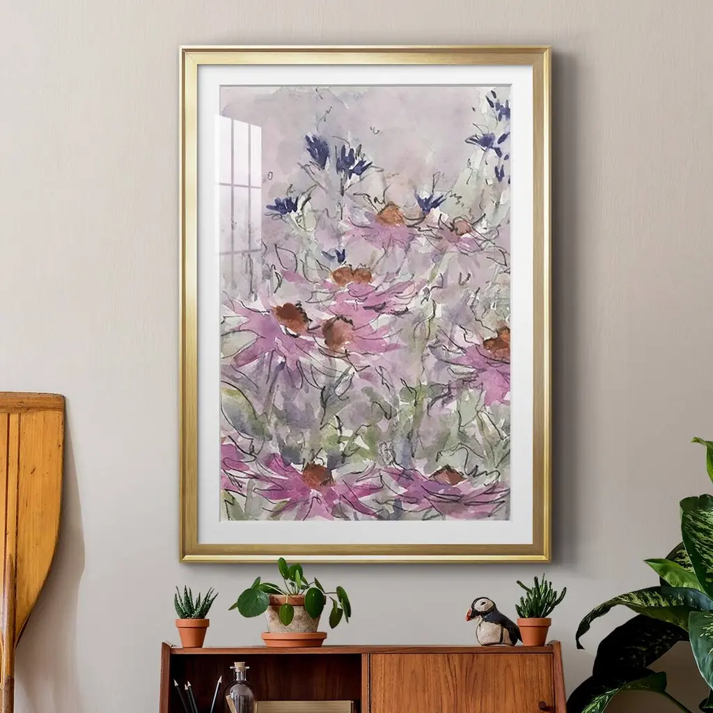 Floral Entertainment II Premium Framed Print - Ready to Hang A Premium Framed Print created to last. Framed in distressed wood and available in an array of sizes and colors Featuring a beveled a solid wood stretcher bar, each piece comes ready to hand 4 SIZES AVAILABLE 30.5''X42.5'' - Overall Size 26.5'X36.5'' - Overall Size 22.5''x30.5'' - Overall Size 18.5''x24.5'' - Overall Size Each piece is made to order. Each piece comes with hanging hardware. Made in the USA Ready to Hang Giclee Paper Print Acrylic Glass Beveled Matt Board